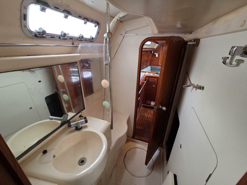 - 2 heads, forward and aft, both with showers (wet head)
