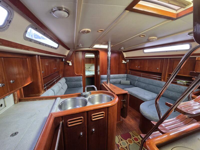 Her desirable center cockpit layout, spacious aft cabin, and sugar scoop stern make her an excellent choice for long-distance cruising.