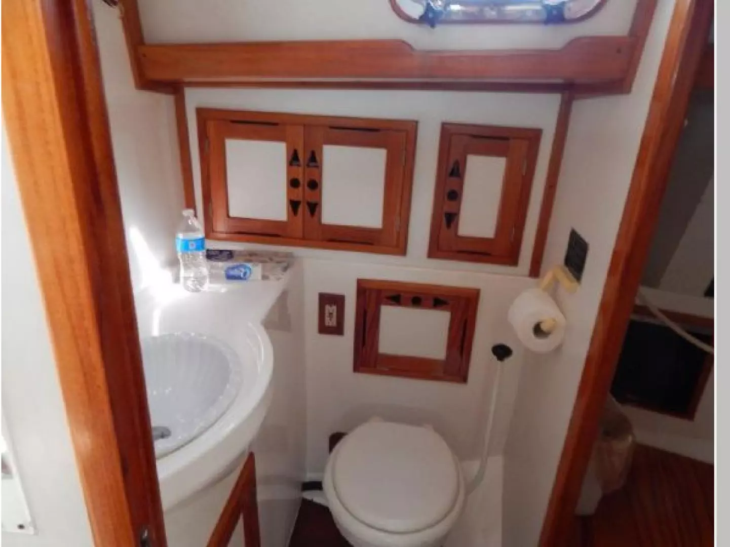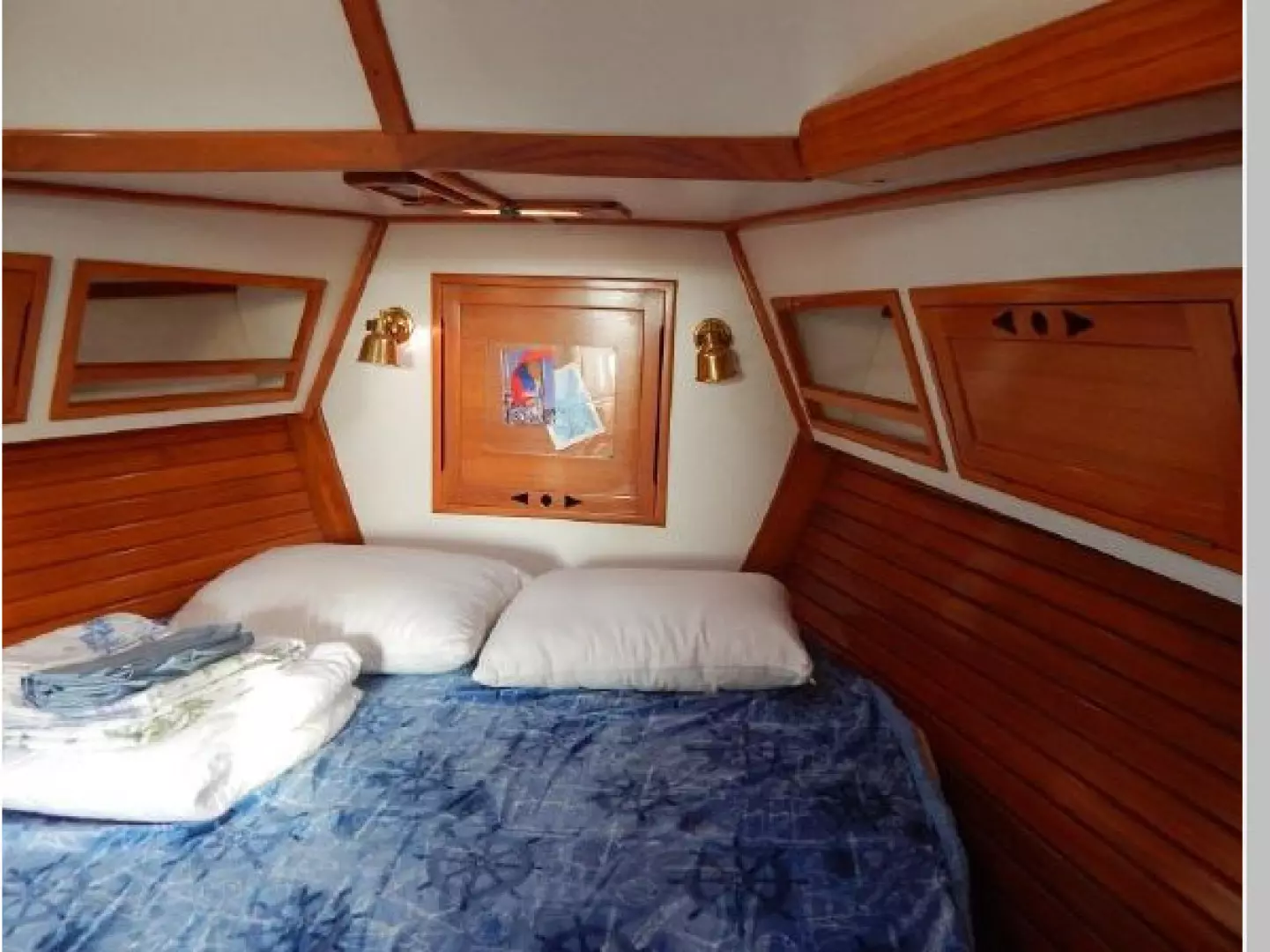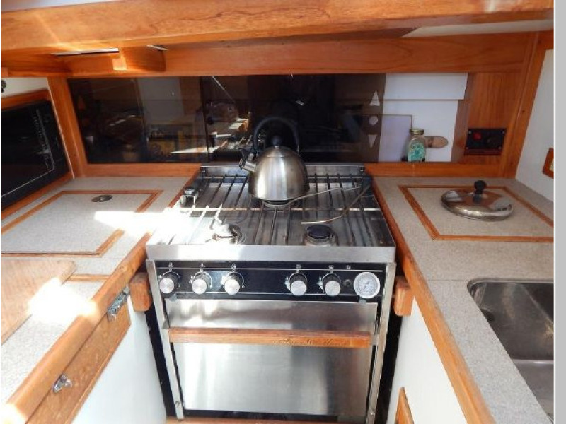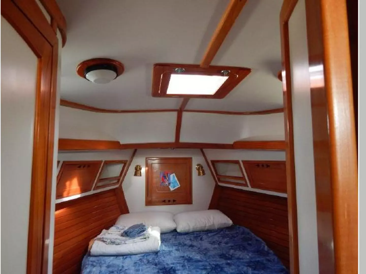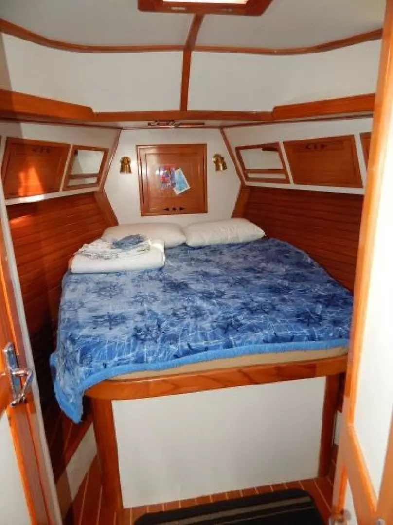 There is a second stateroom to starboard with a single berth, abundant storage in book cases, hanging lockers and under berth lockers.