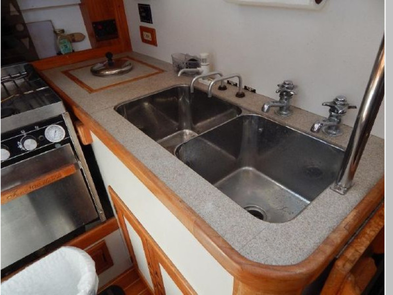 - Double stainless steel sink with hot and cold pressure water, 2 manual spigots for fresh and salt water