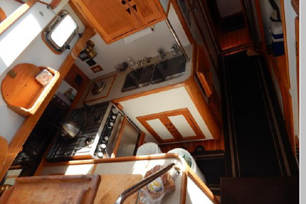 Next aft to port is the U-shaped galley.
