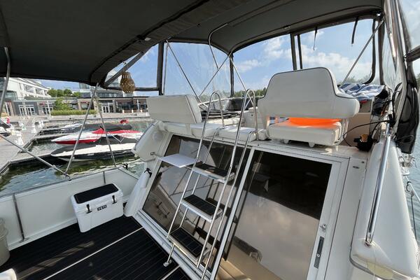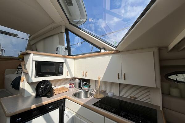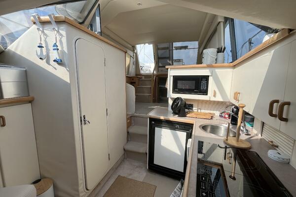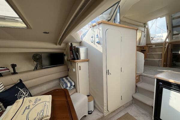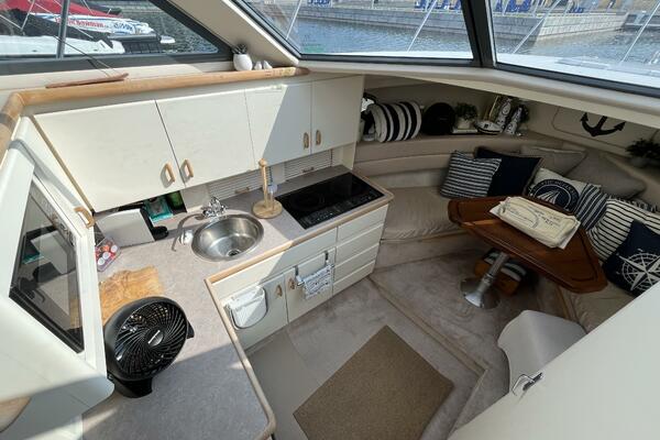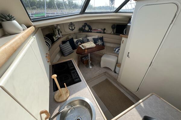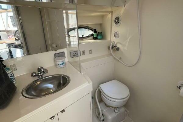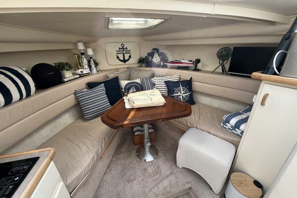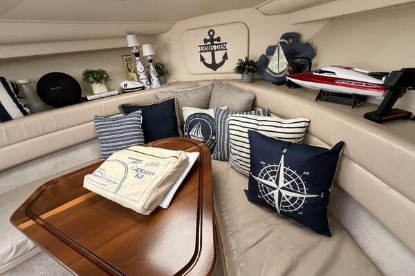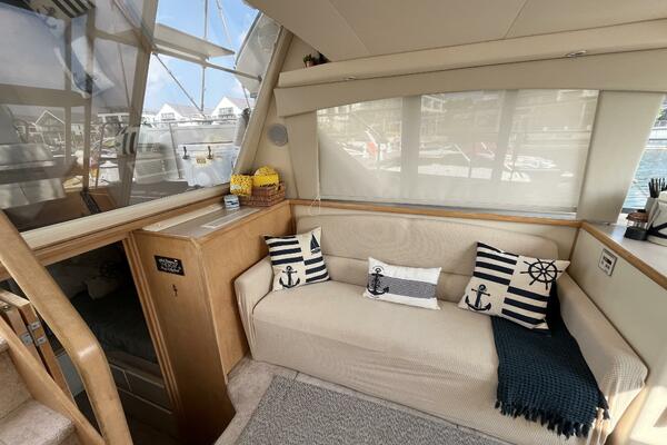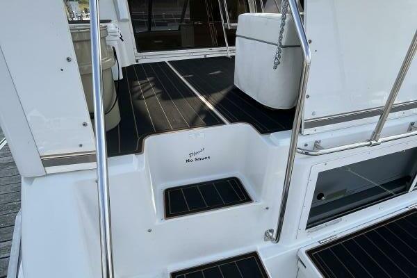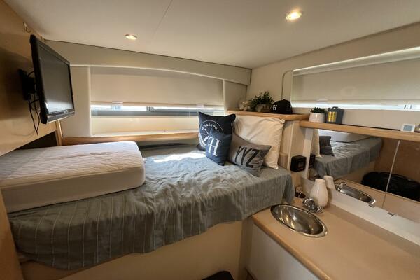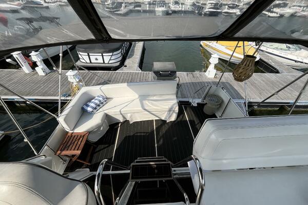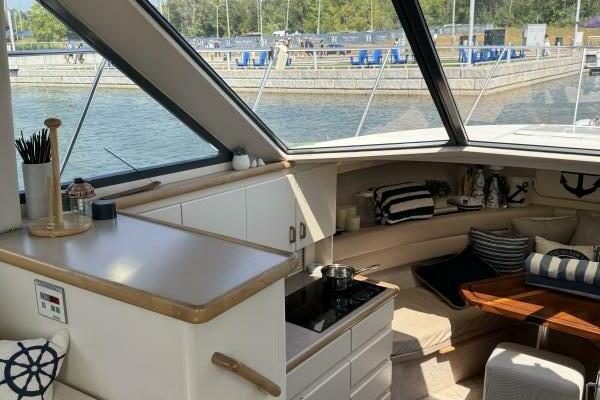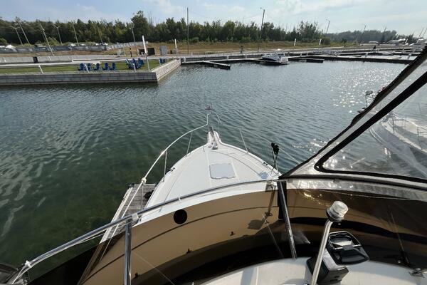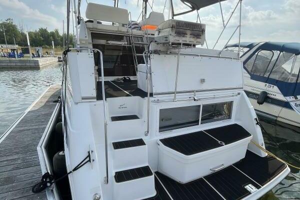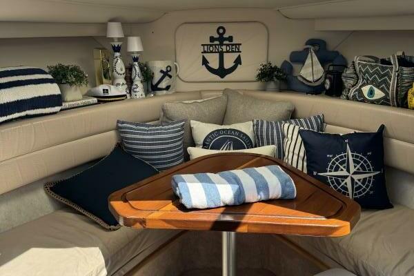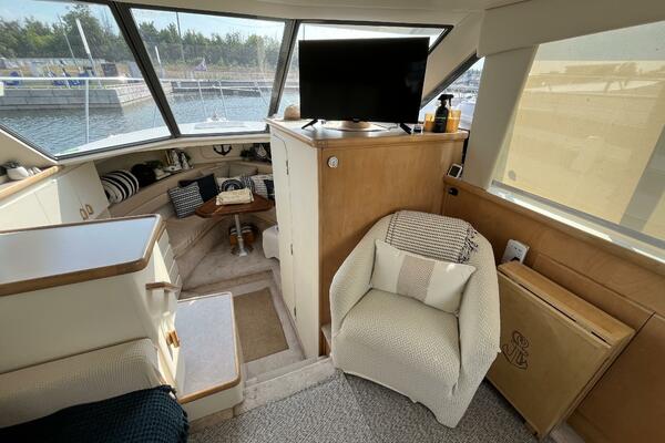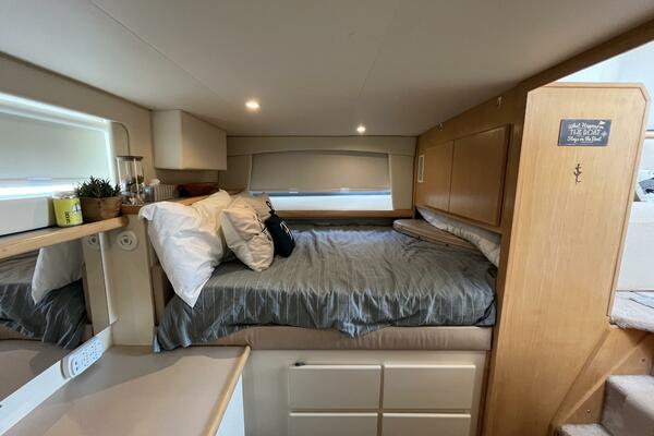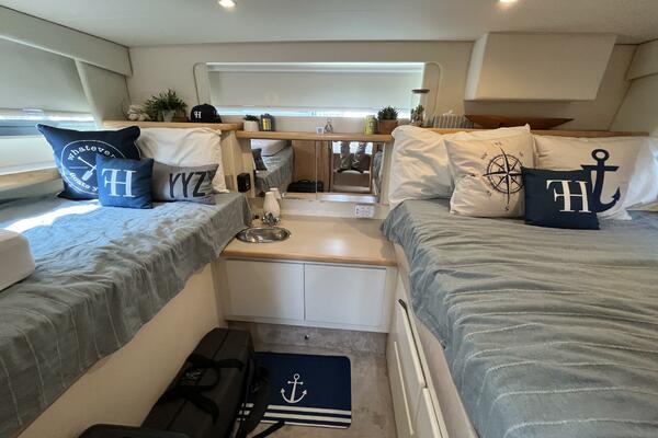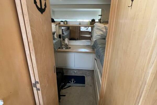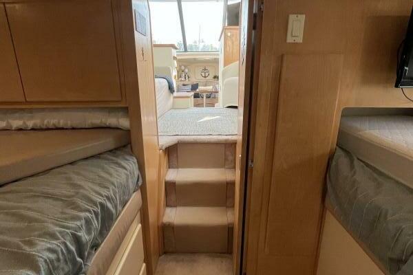 The 325 Aft Cabin is renowned for its smart use of space, and this model is no exception. Inside, you’ll find a bright and open salon with large wraparound windows, a fully equipped galley, and ample seating for relaxing or entertaining. The private aft stateroom provides a comfortable retreat, while the forward stateroom ensures additional guest accommodations.