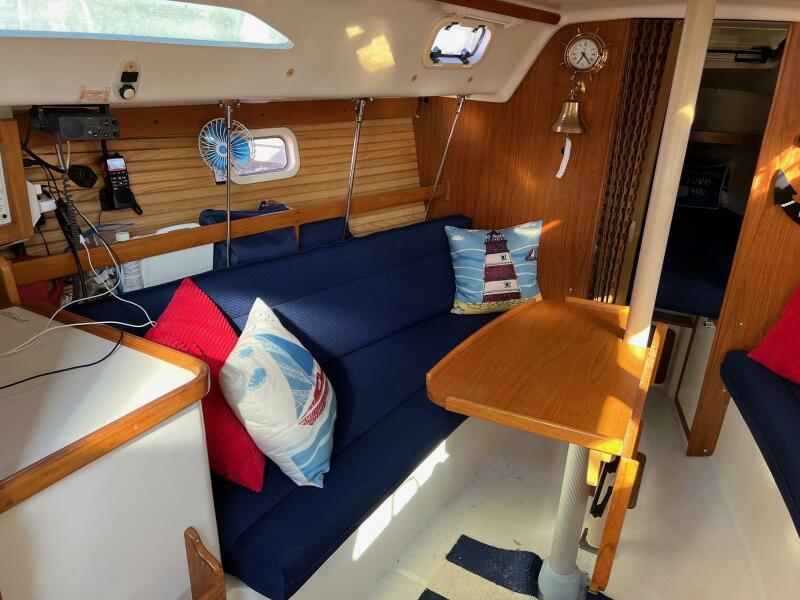 "LADY JULIAN" is a classic Catalina 28 that has been kept in great condition. Powered by a Universal 18hp with 1448hrs. "LADY JULIAN" has a great cockpit layout to keep the crew comfortable. Many refer to the 28 MK II as the biggest 28' sailboat you'll find. Her below deck spaces consist of a forward private cabin. Her enclosed head with shower is easily accessible from the cockpit and the cabin. She has a Canvas Dodger and Bimini, a walk-through transom w/swim platform, hot and cold stern shower, double lifelines with gates at the cockpit, and shore power. Electronics include gin-pole mounted Furuno radar, Apelco 5160 VHF, Raymarine Autopilot, Wind Speed and Direction Indicators and Depth Finder. Her sail inventory consists of a Doyle Mainsail with a Doyle Cradle Cover, 130' Genoa on a Schafer roller furling system. All lines lead aft to the cockpit through rope clutches, an above cabin traveler, and she has 2 self-tailing winches on the cabin top and 2 two-speed self-tailing jib sheet winches in the cockpit. She has two anchors, Rocnar 10 and a Danforth, the Rocnar is permanently mounted on a bow roller for quick launch with chain and rode stowed in separate deck bow locker.