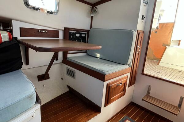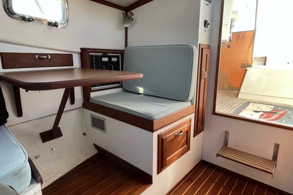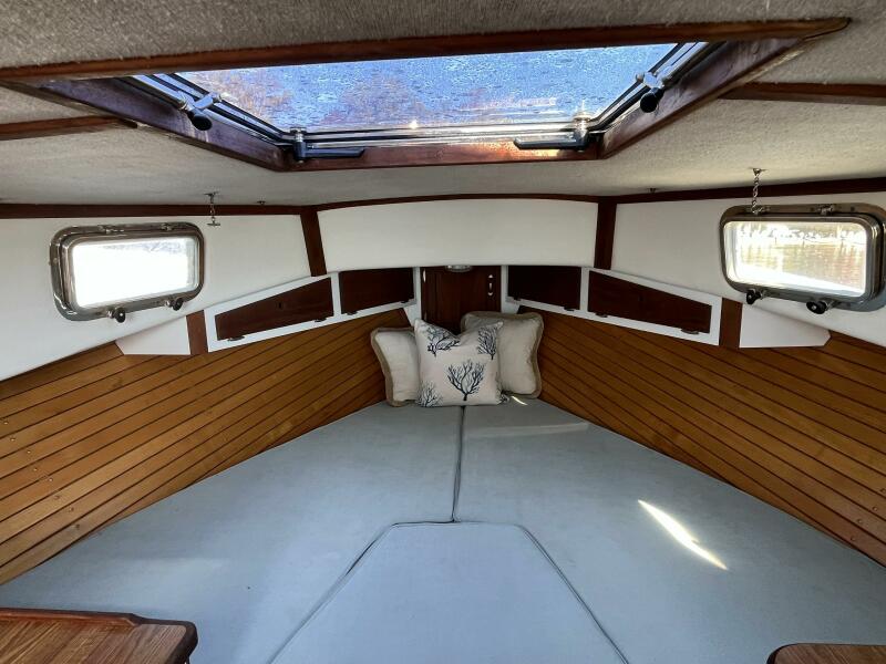 - Varnished teak and holly cabin sole, varnished cherry hull ceiling, teak doors and trim