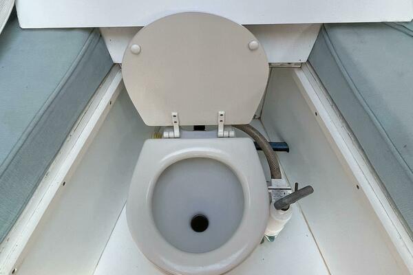 - Holding: 20 gallon poly tank with macerator pump or y-valve for overboard discharge