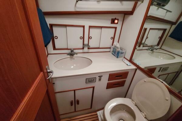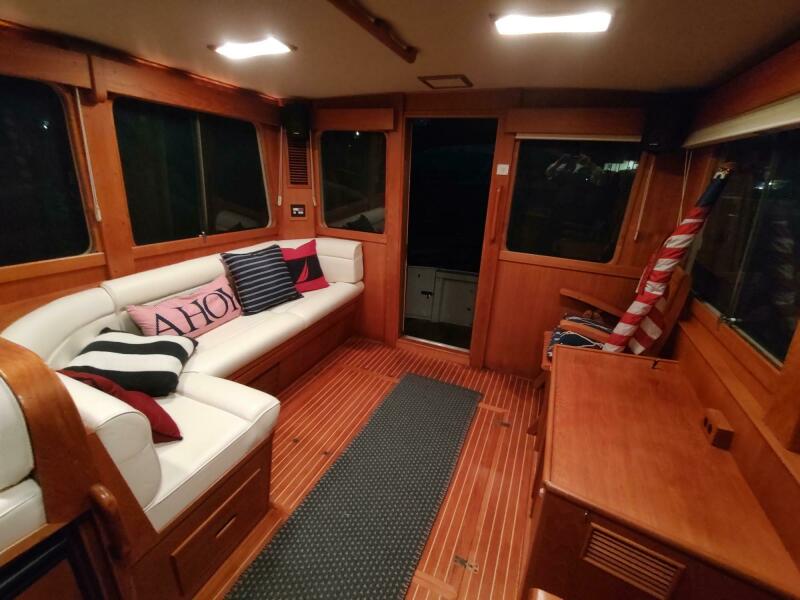 Classic Ray Hunt Grand Banks Eastbay 40 flybridge design with full canvas enclosure. Powered by the ever-reliable Cat 3208 engines, this vessel is ready for her next owner. One of 20 built, the Grand Banks Eastbay 40 is a timeless example of a great design. Perfect coastal cruiser and Great Loop explorer. Two cabins and a wonderful salon offer cruising for the whole family. The galley boasts a full oven and microwave and is very efficient for cooking gourmet meals.