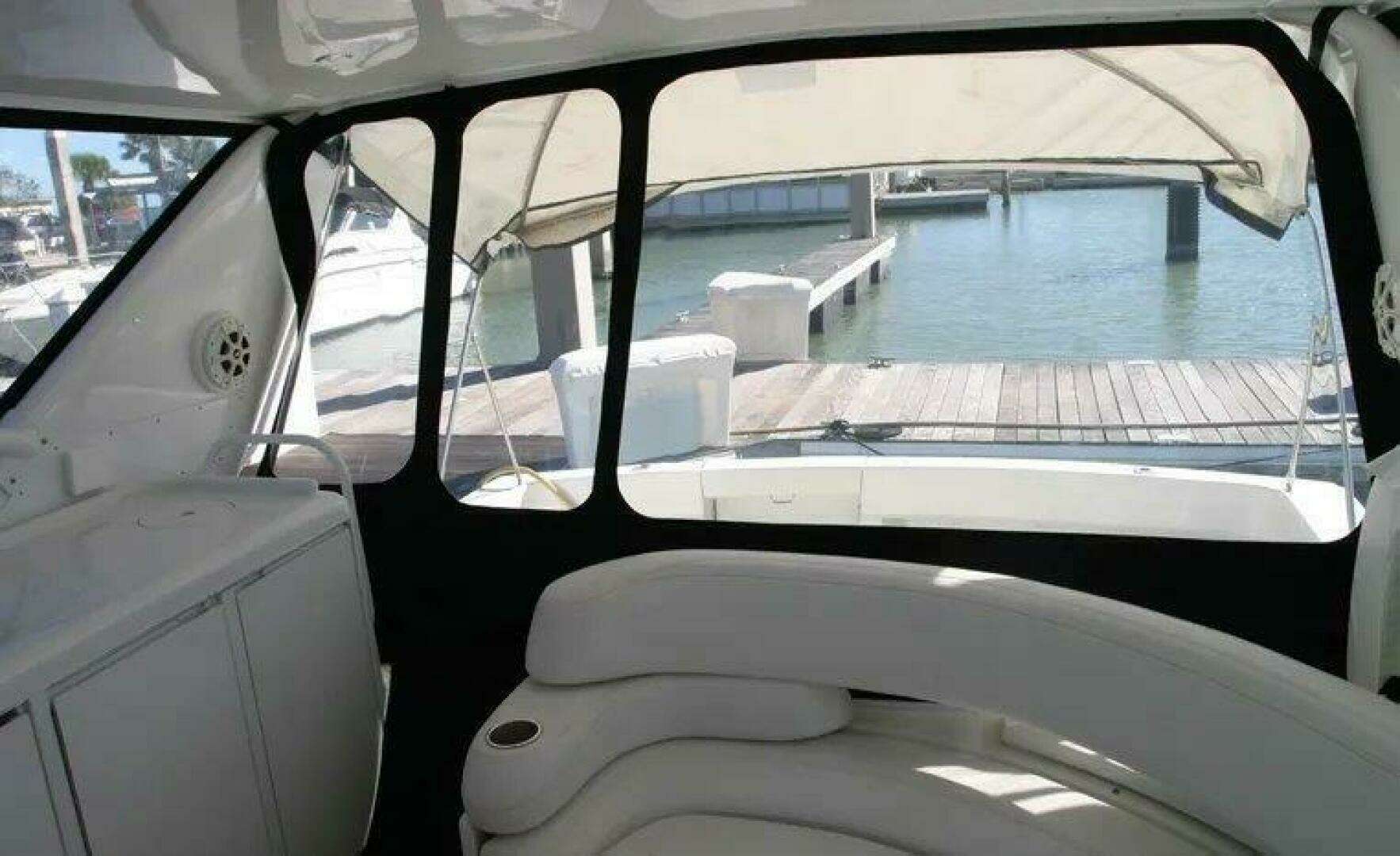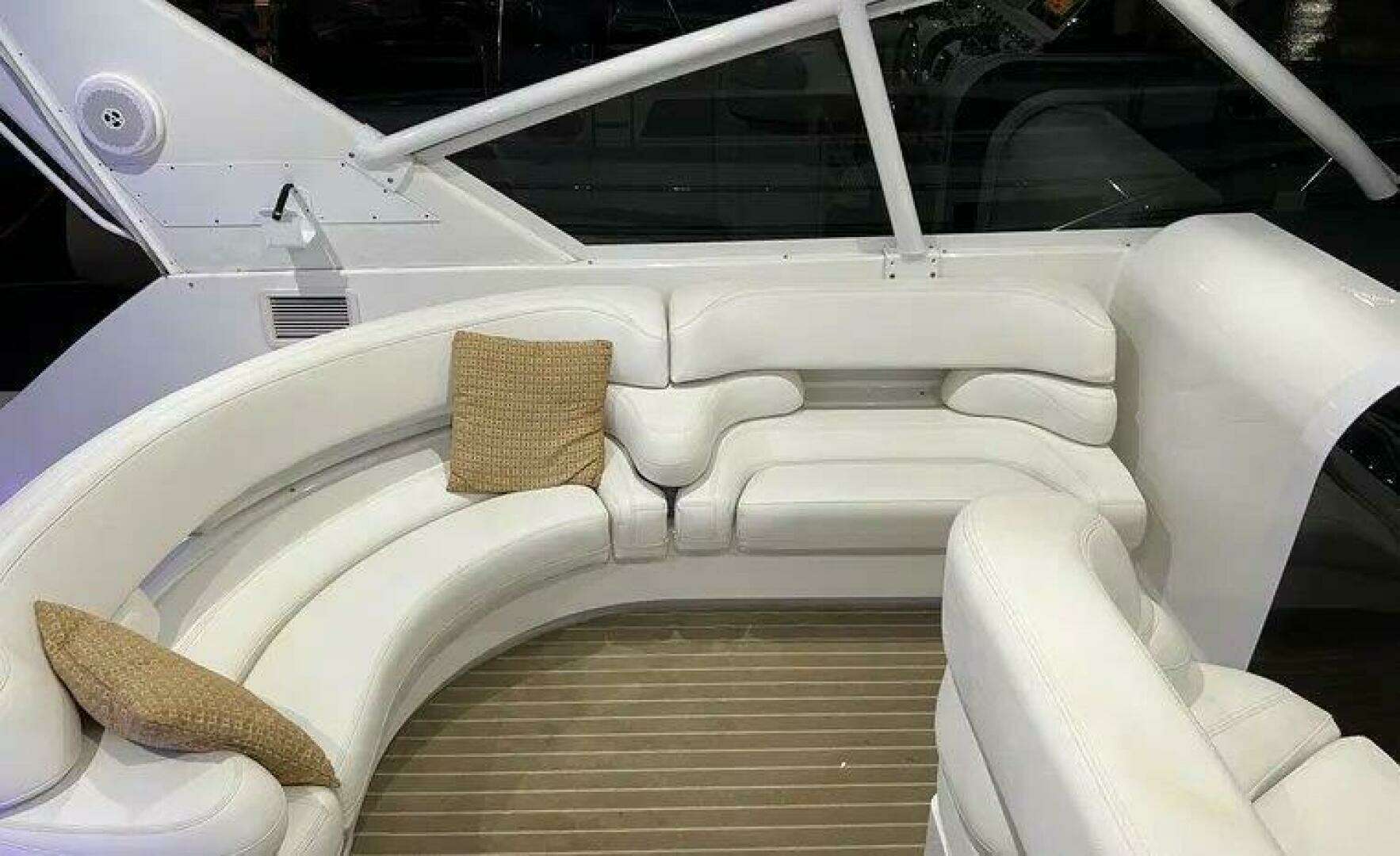 This is an excellent example of a well maintained and upgraded Sport Cruiser, perfect for evening excursions or weekend camping events. The aft cockpit features thigh high coaming padding and rear facing lounge chairs.