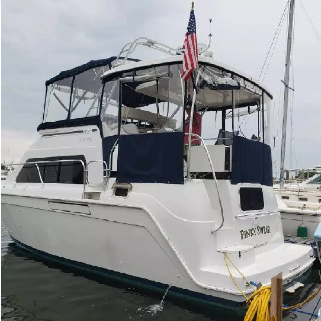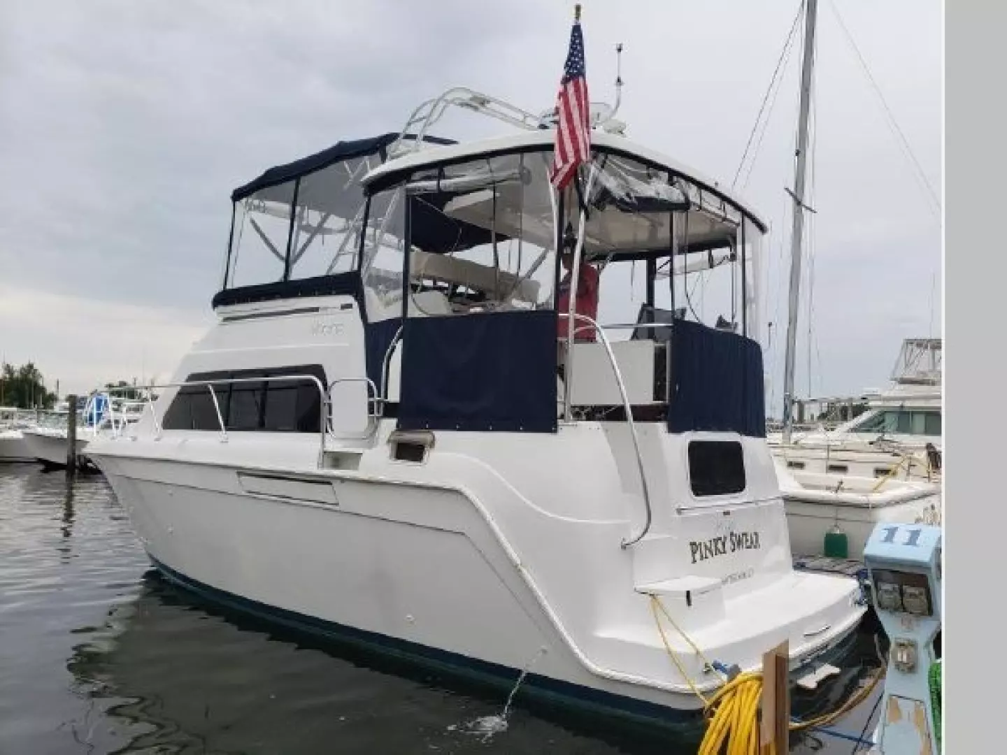 "PINKY SWEAR" is a beautiful 34' Motor Yacht that has it all! This boat has been kept in amazing shape. Twin 454 Marine Power engines that are fresh water cooled with Borg Werner Velvet Drive Transmissions and only 586hrs. Built in Westerbeke generator with 334 hours. Raymarine combination GPS/Plotter and Furuno Radar. Spacious cabin with heat/AC. Two onboard refrigerator/freezers. Microwave and dual stove cooktop. "PINKY SWEAR" is MUST-SEE 34' Motor Yacht that has all the comforts of home while enjoying the water!
