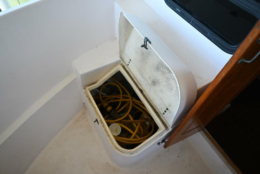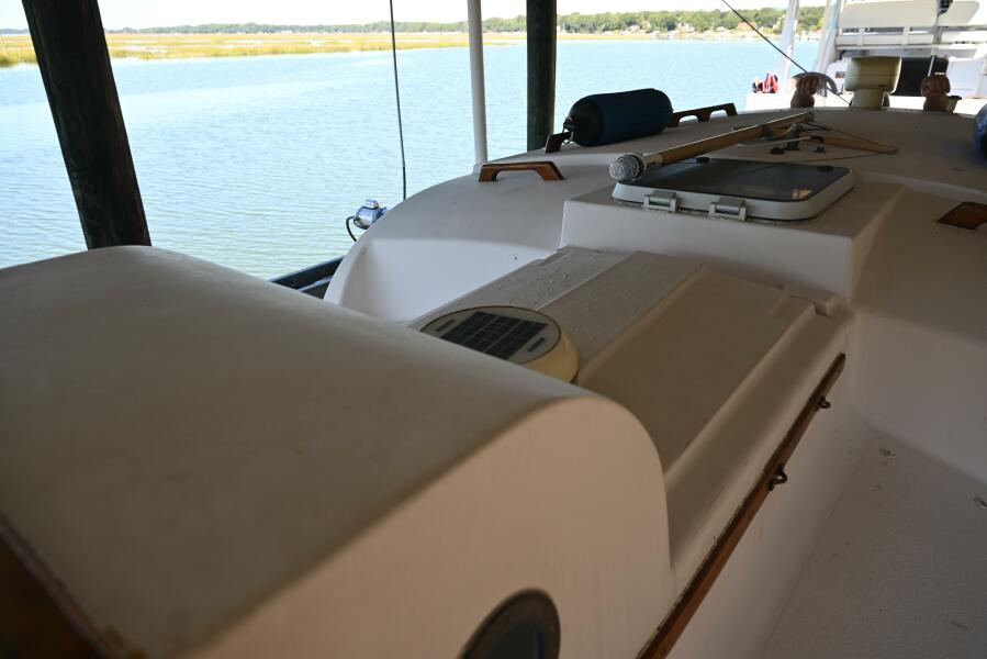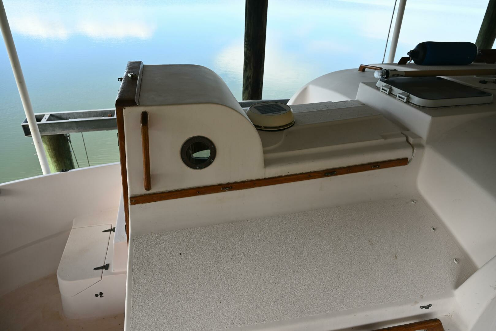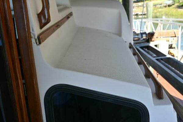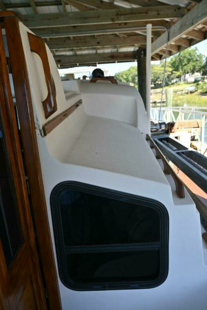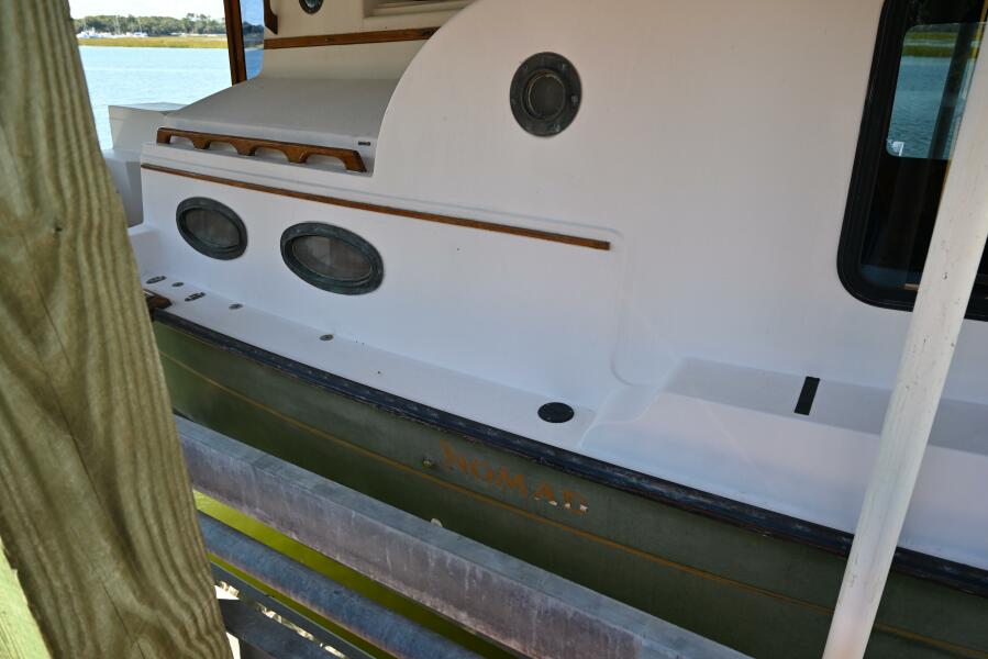 The Nomad Trawler comes in two versions, Special and Tropical this Nomad is the Tropical version: The Tropical includes a mid-cabin hatch, four bronze opening ports, ice chest, electric bilge pump, pressurized water, cockpit shower, wood interior, teak and holly cabin sole, cane interior doors, and cockpit coamings.