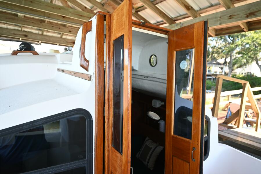 This Ted Brewer designed pocket cruiser is a stout, comfortable, and able craft. She has some very unique features including: both forward and aft cockpits, a comfortable "Cab Forward" wheelhouse with great visibility, & a reliable fuel efficient Honda power plant.