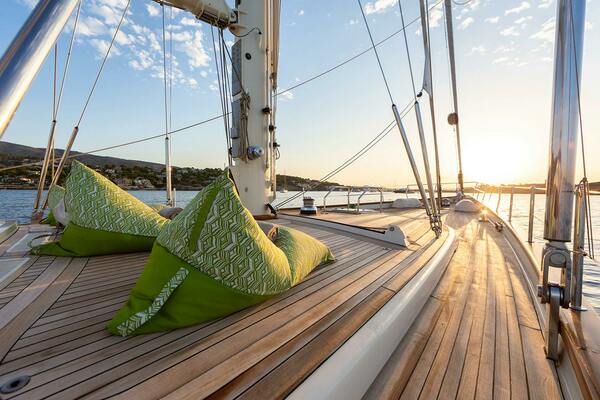 - Full recover of interior main salon sofas. Professional cleaning of all carpets and floors. Professional cleaning and coating of all showers and marble on board.