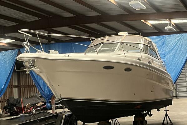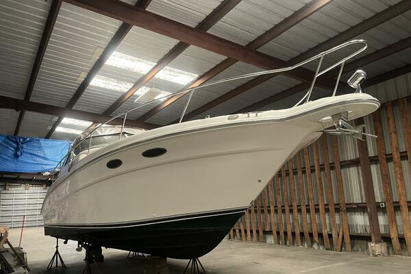 Professionally maintained and stored indoors during the off-season, this Sundancer has received numerous ongoing updates, including a recent canvas system, exterior cushions, upgraded electronics, galley appliances, and exhaust system and loaded with factory options throughout.