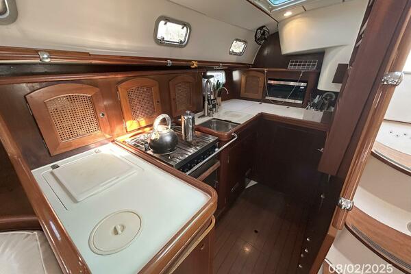 The galley is starboard aft in the salon.