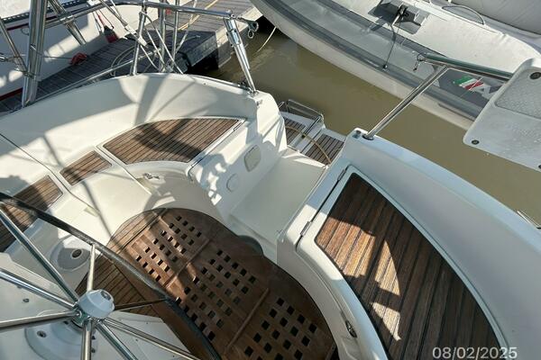 From the sugar scoop transom, you walk through the transom pass-thru into the cockpit and find seating on each side and aft and the helm. Walk forward and step down through the companionway into the salon to find a stateroom with a queen size berth aft, head port aft, nav station to port, benchseat with storage port forward, galley starboard aft and wrap-around seating with storage, removable double pedestal table and benchseat with storage to starboard. Walk forward into the forward stateroom where there is an island queen size berth and ensuite head. Auxiliary access is via two side panels and lifting companionway stairs. Generator access is via the cockpit starboard seating compartment.