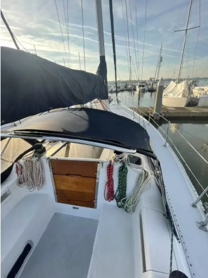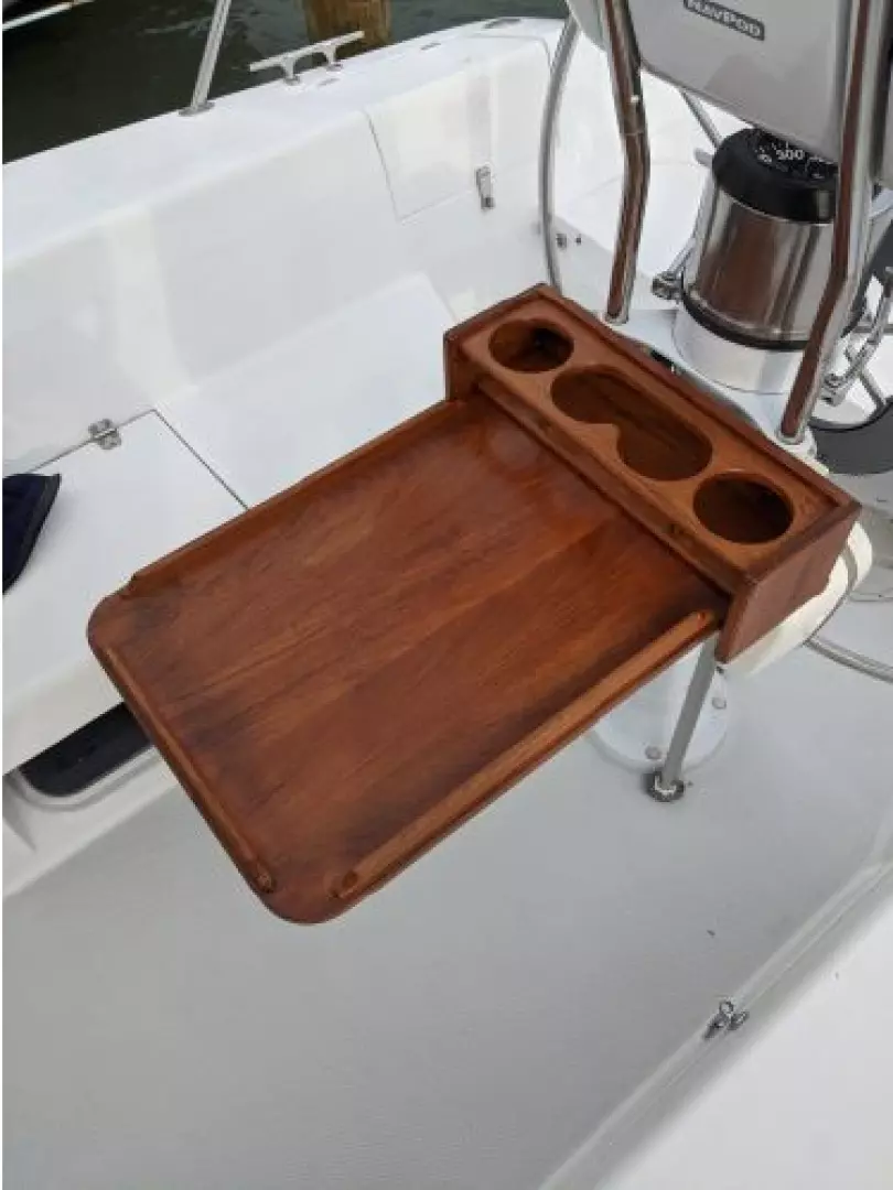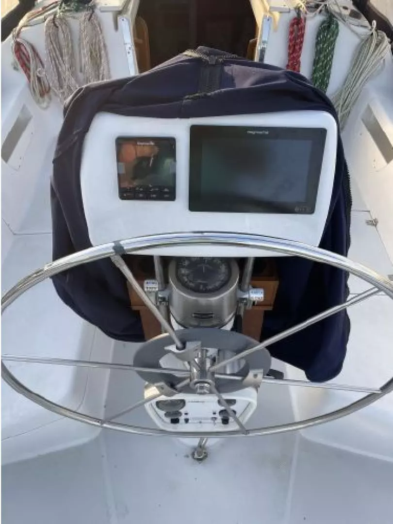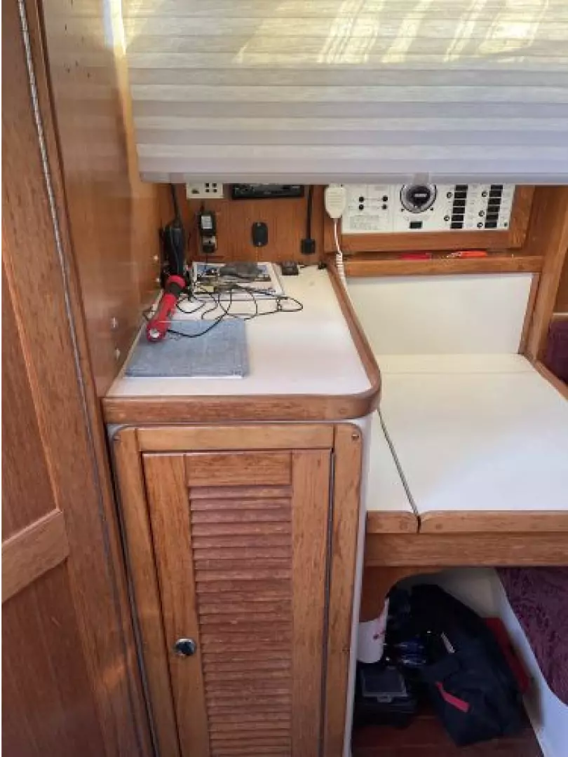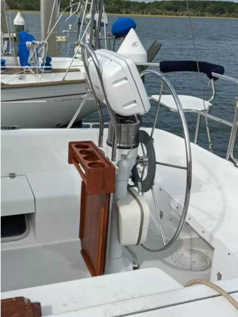 She has a wing keel providing a shallow draft, lower center of gravity, better access and stiffer ride