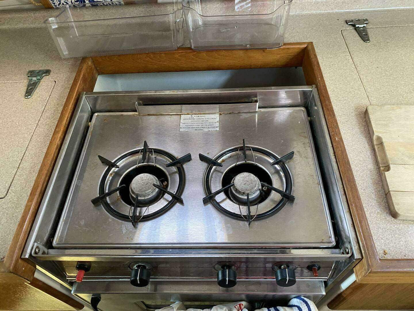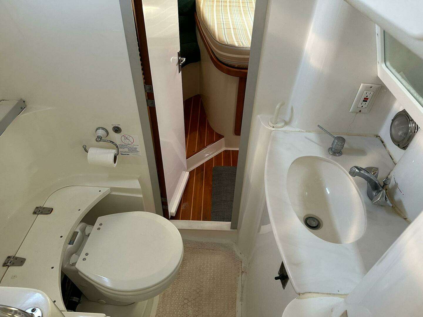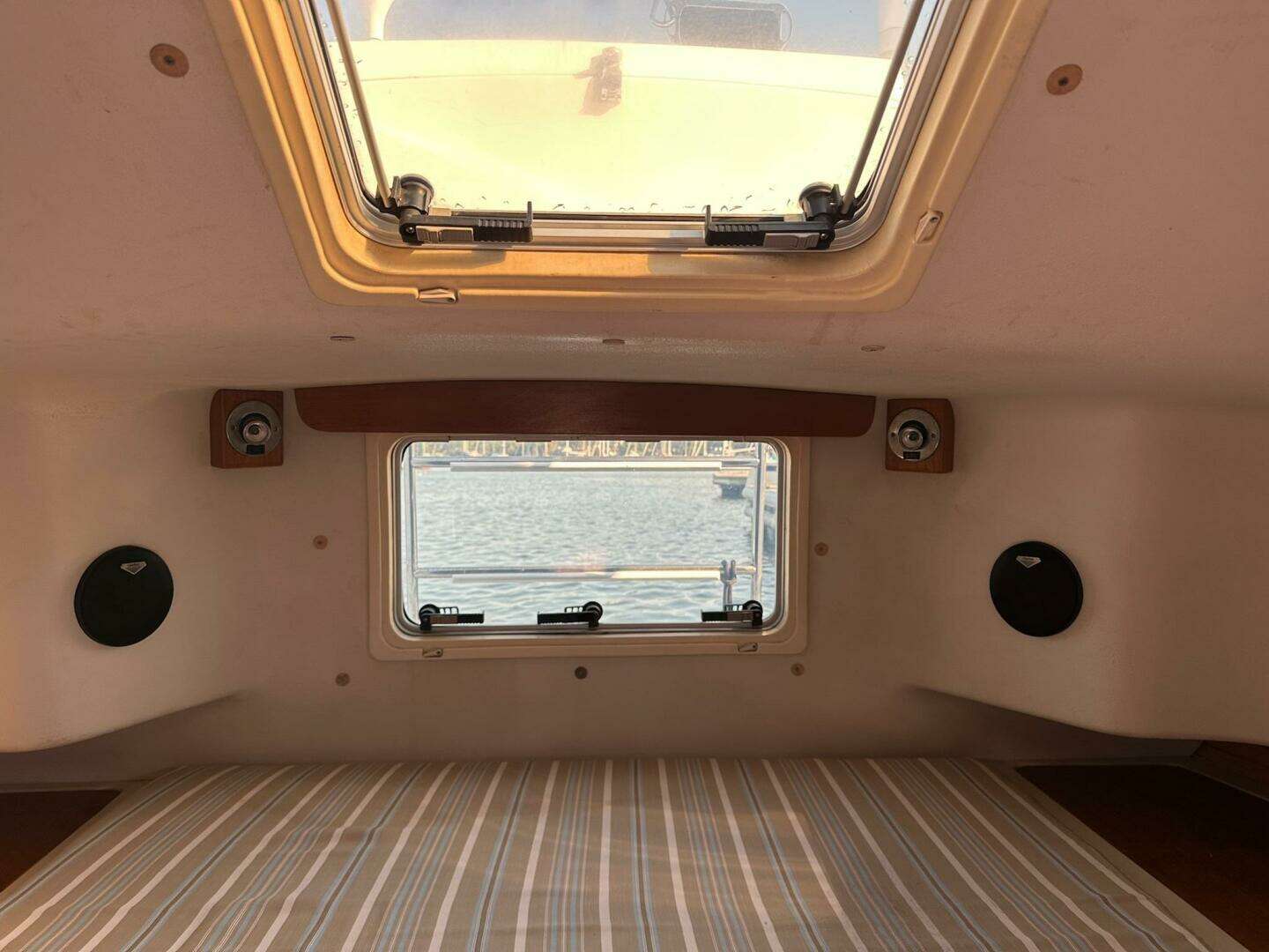 Air conditioned comfort with 6ft 5in headroom. Main salon has dinette to port across from a settee with storage behind. Aft to starboard is the nav station with entrance to the main head which has separate shower stall. Walk thru Galley is aft to port with 2 sinks, H&C pressure water, 2 burner propane stove & oven, microwave (2018) and refrigeration (2024). Aft is entrance to owners cabin with large berth with seats outboard, vanity and access to head. Aft head with electric fresh water toilet, shower. V-Berth forward with private manual head and sink. 6 solar vents in cabin. Macerator, Y-valve for heads, holding tank, hot & cold pressure water.