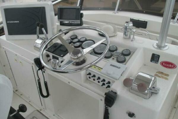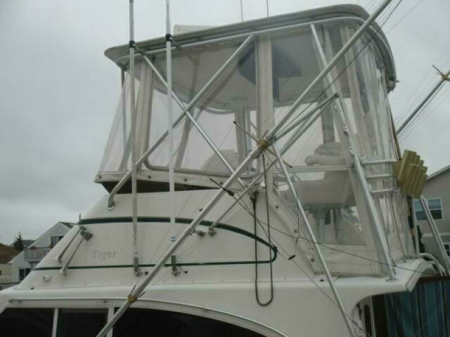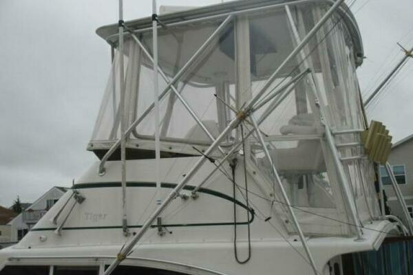 If you have fishing in mind, Tiger is well outfitted with a large electronics package, double spreader outriggers, 9 pole rocket launcher along with 8 flush mounted pole holders, large fish boxes, a live bait well and a large cockpit with a transom door to haul in the big ones.