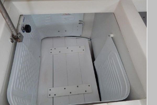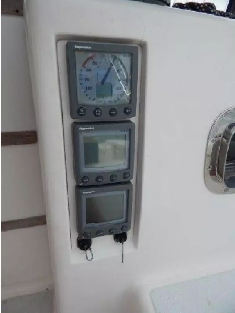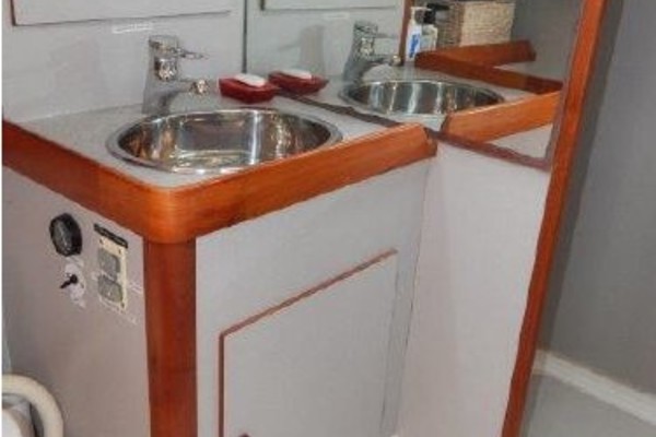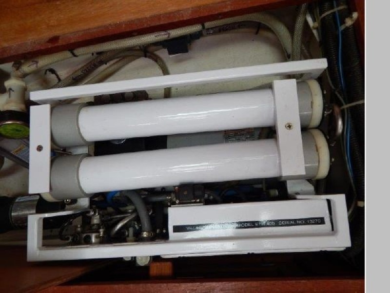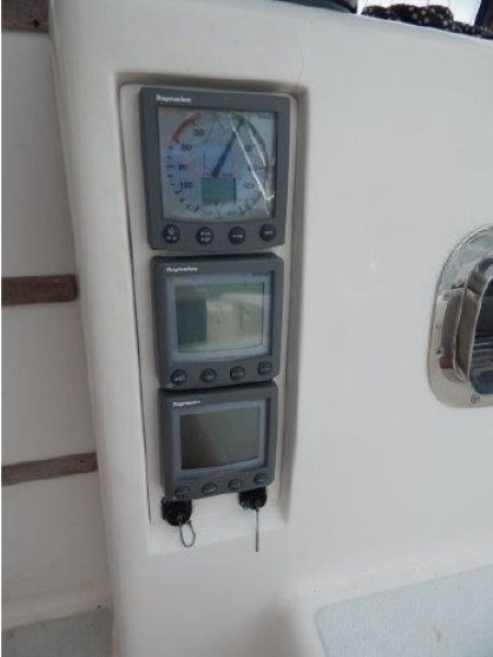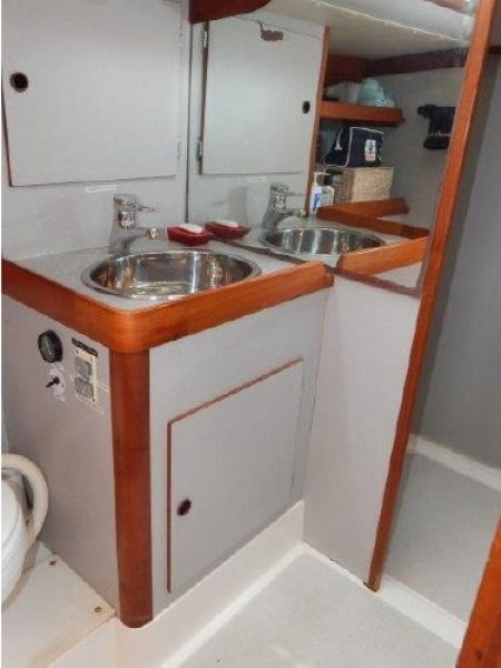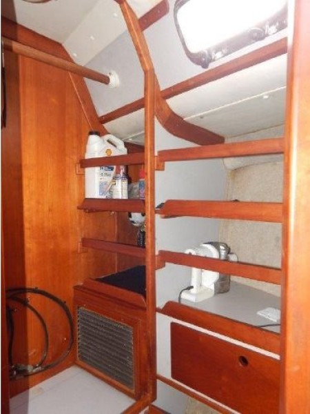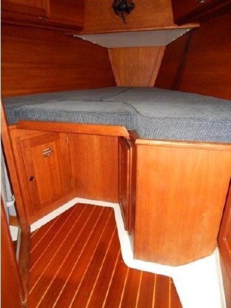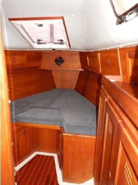 The interior is finished with warm teak bulkheads and joinery, teak and holly sole and white laminates. All stainless steel opening ports and overhead hatches provide ventilation. There are interior 12vdc fans to assist.