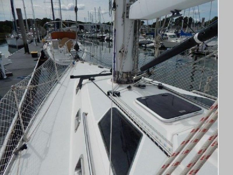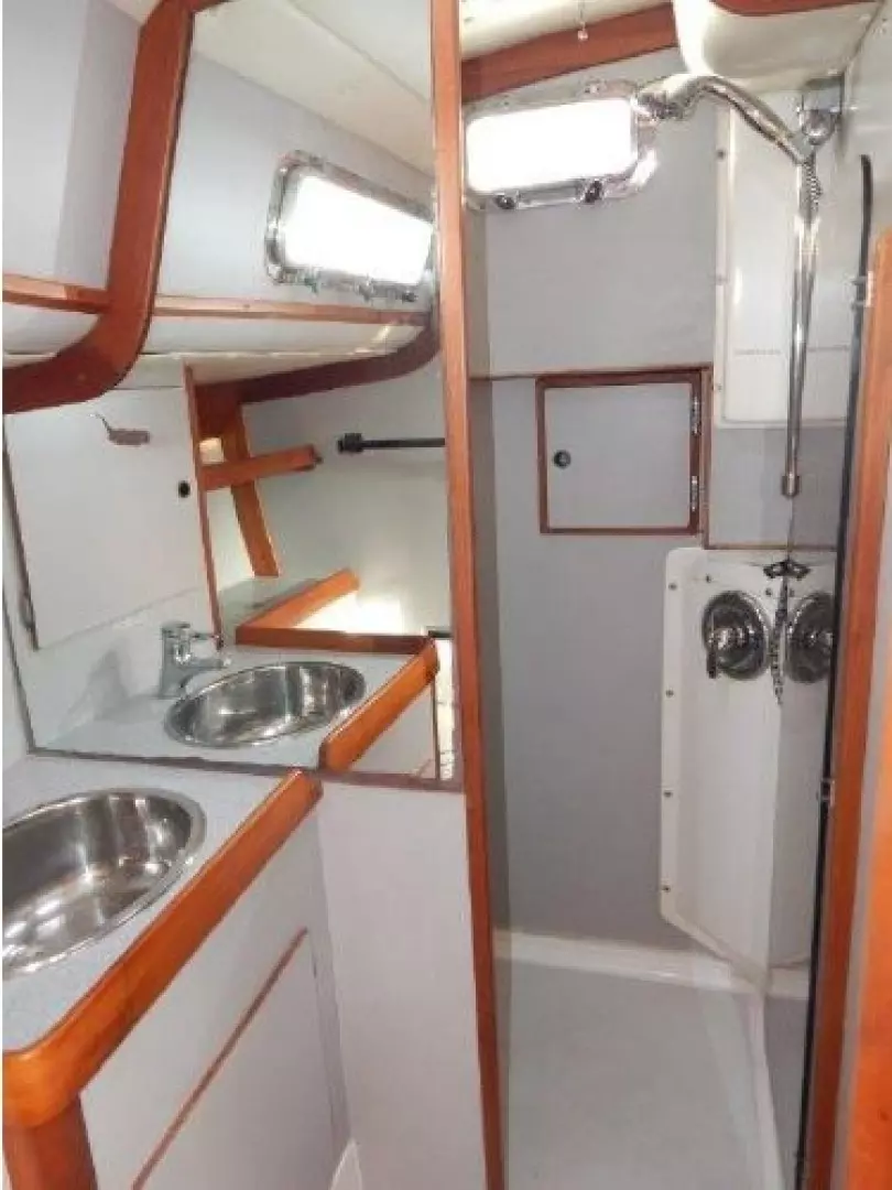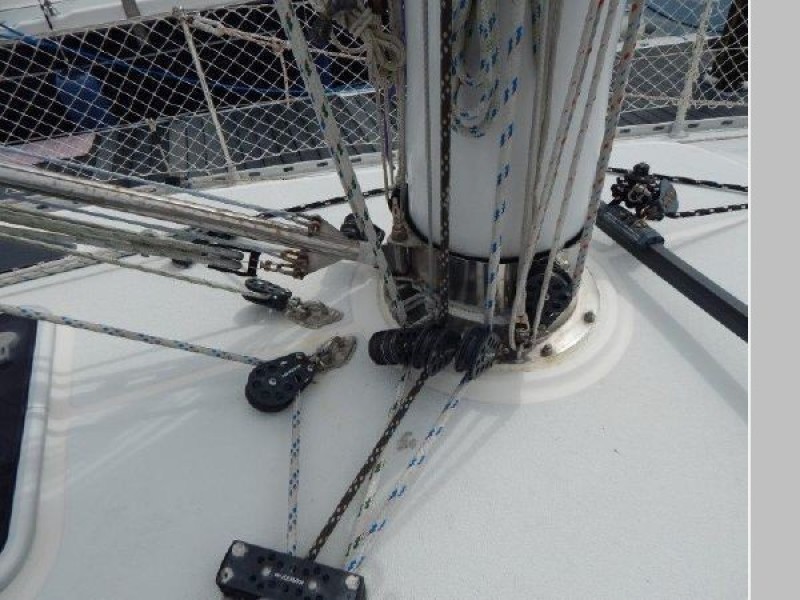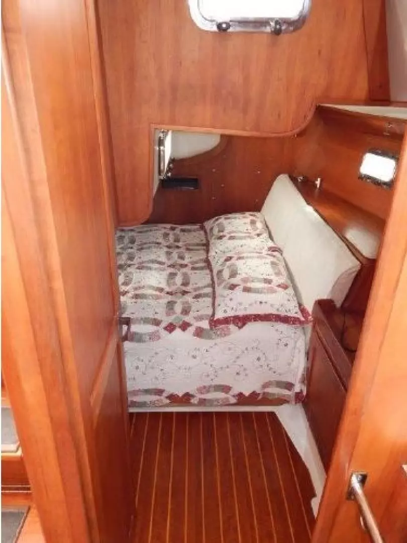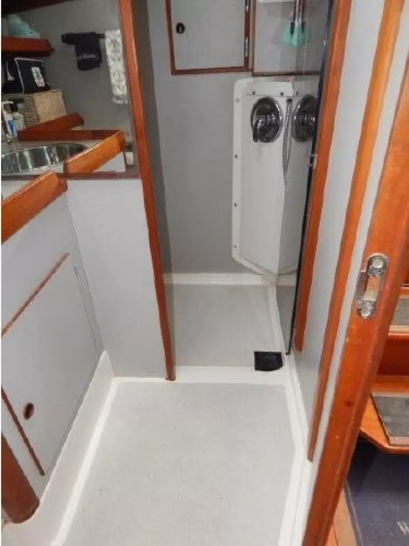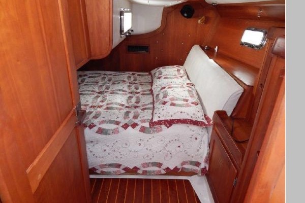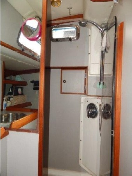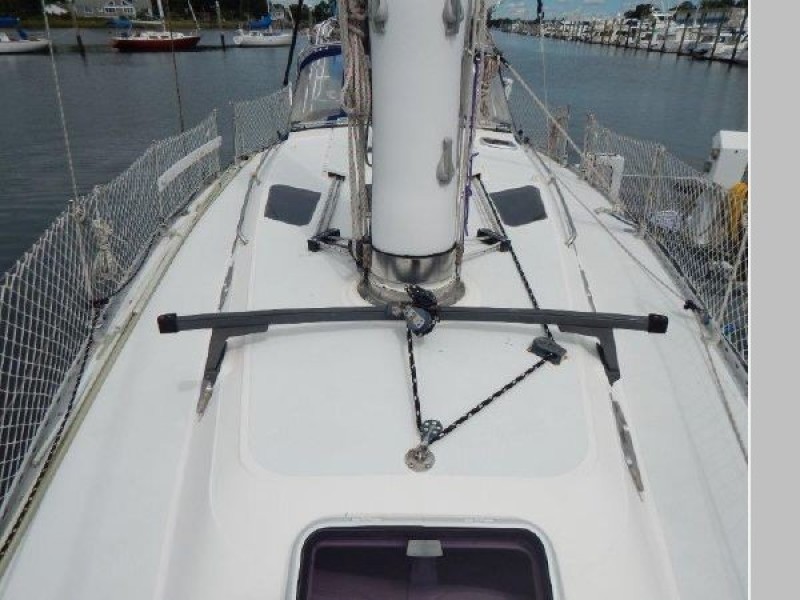 All control lines run aft for easy management from the cockpit. There are three reef points in the mainsail providing flexibility for all conditions. The jib is on a roller furler and is controlled from the cockpit. I have sailed "Waterlilly" in every condition imaginable, alone or with short crew, and always felt safe. The boat will not let you down.
