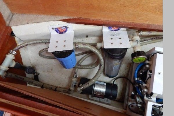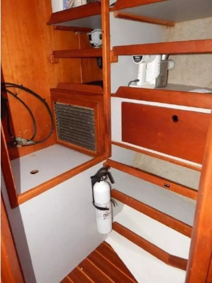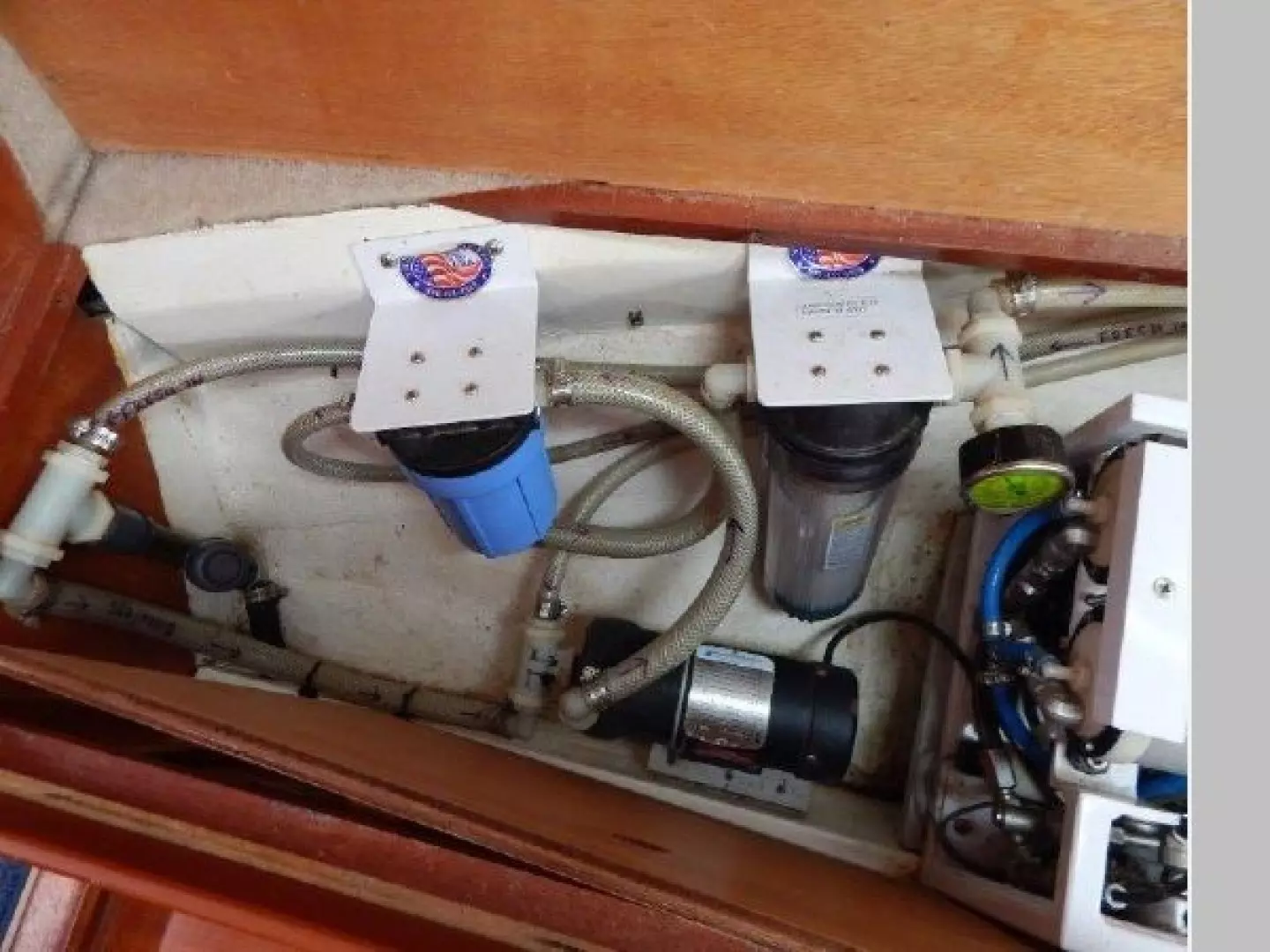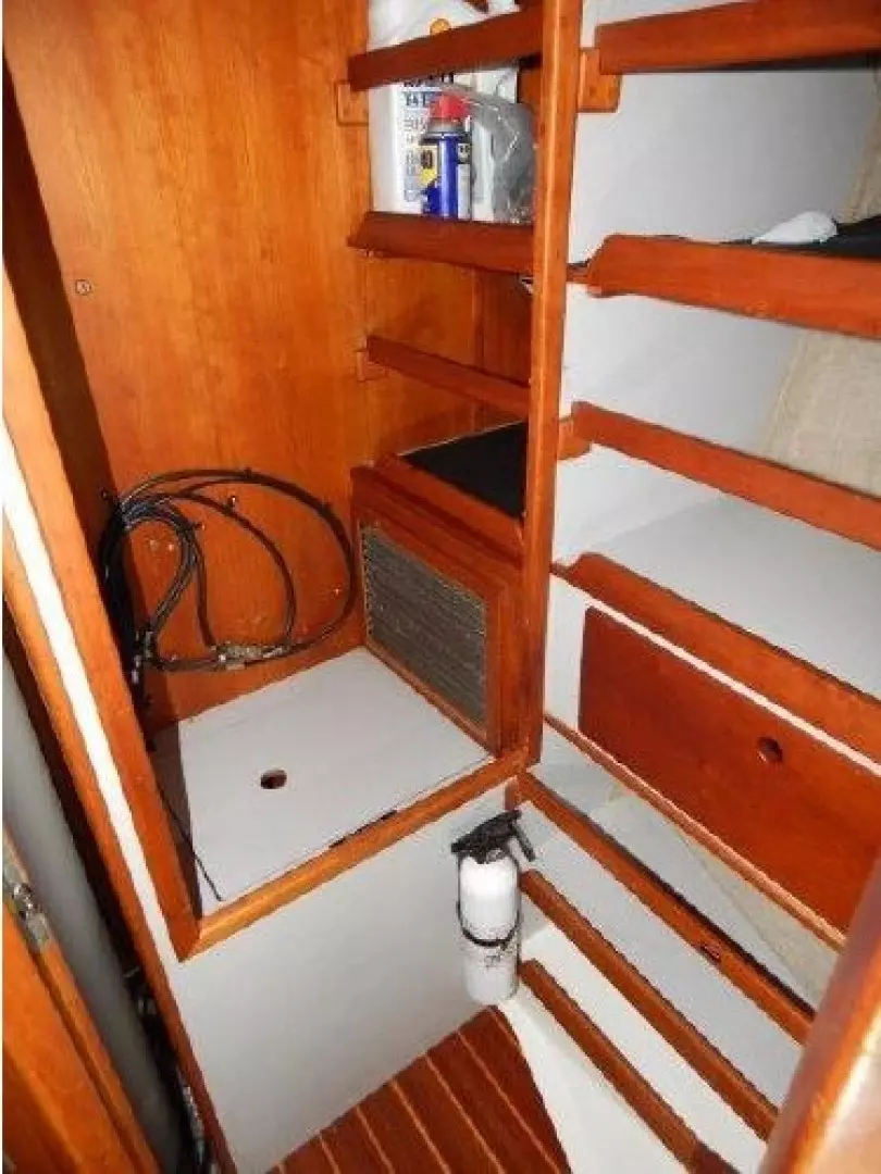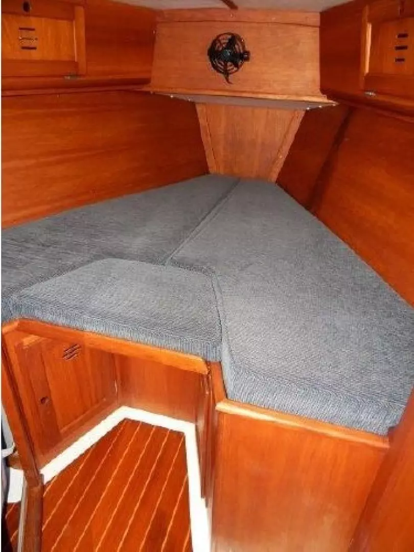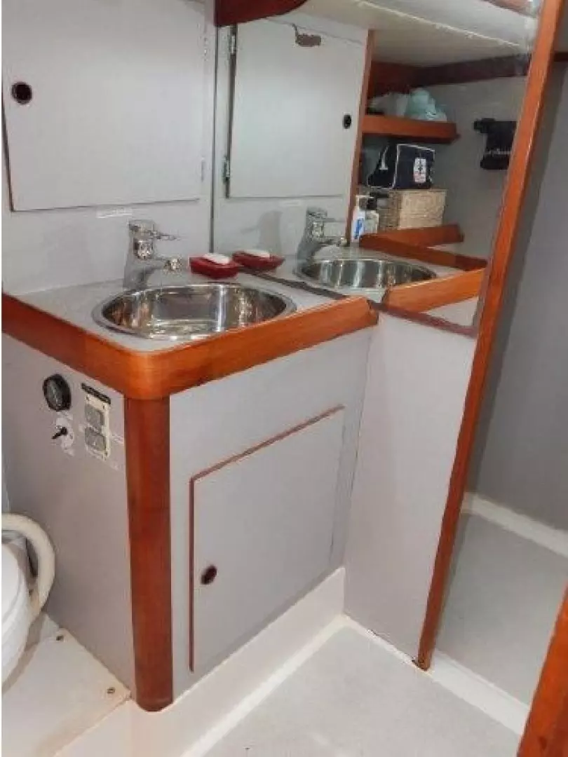 All control lines run aft for easy management from the cockpit. There are three reef points in the mainsail providing flexibility for all conditions. The jib is on a roller furler and is controlled from the cockpit. I have sailed "Waterlilly" in every condition imaginable, alone or with short crew, and always felt safe. The boat will not let you down.