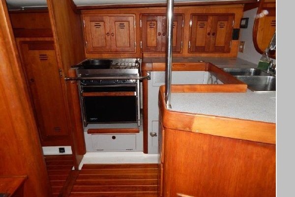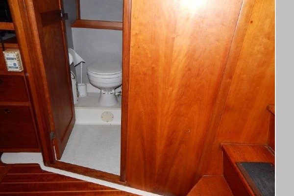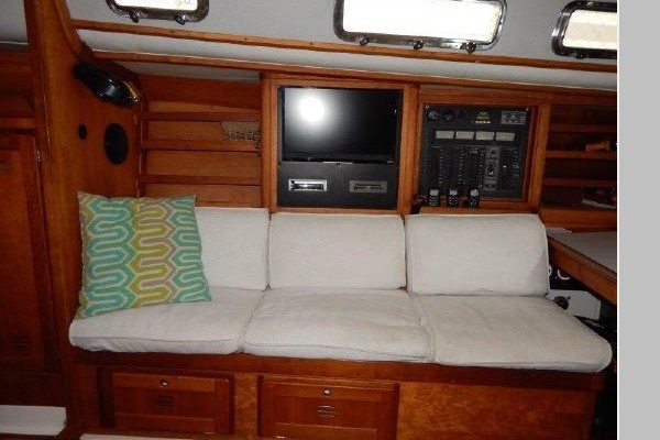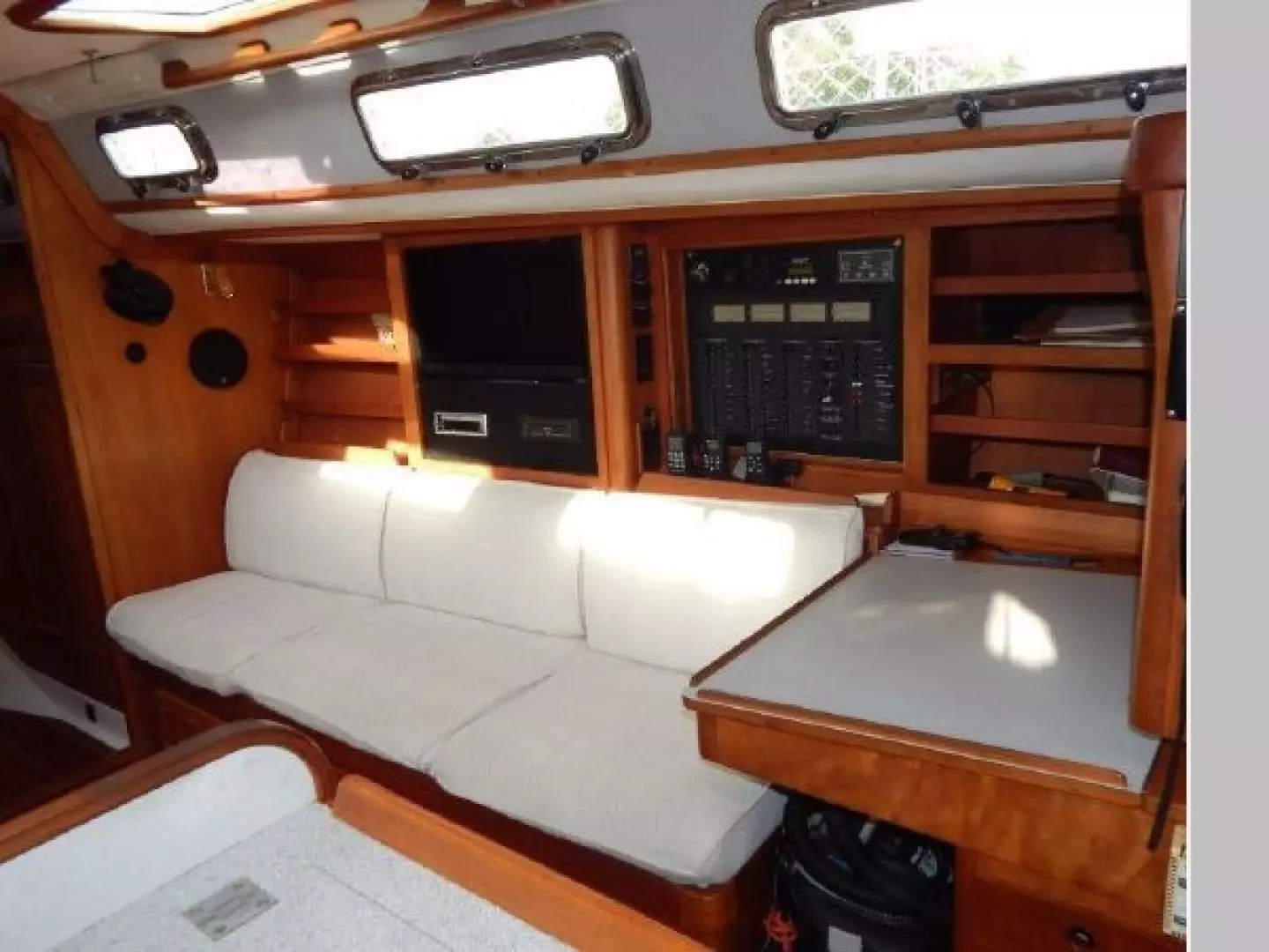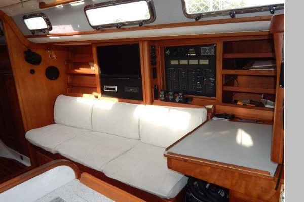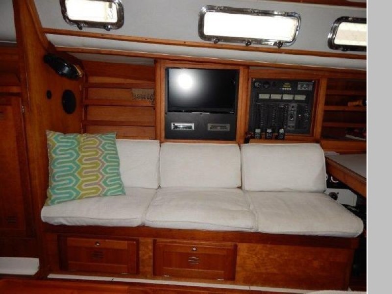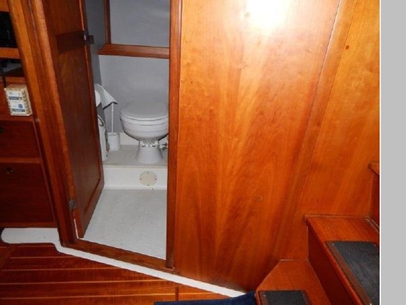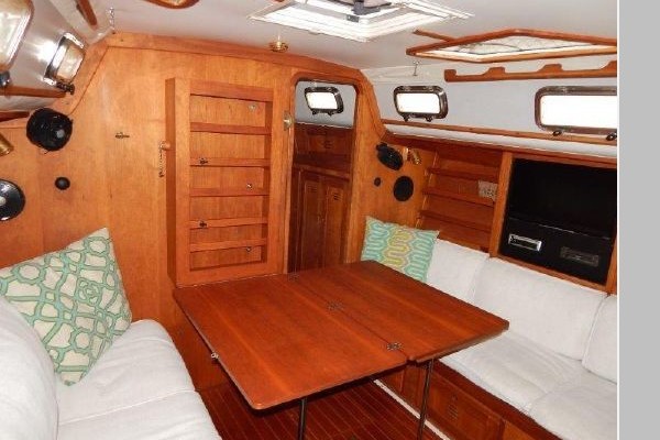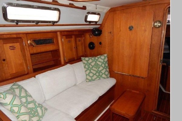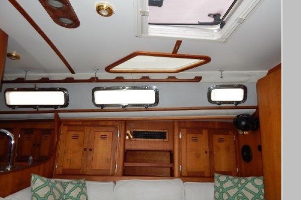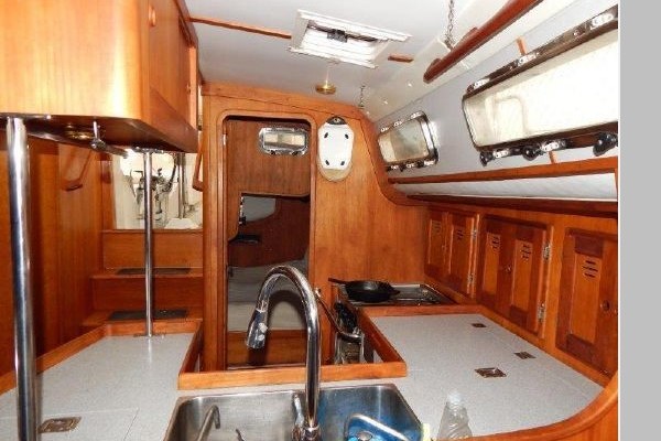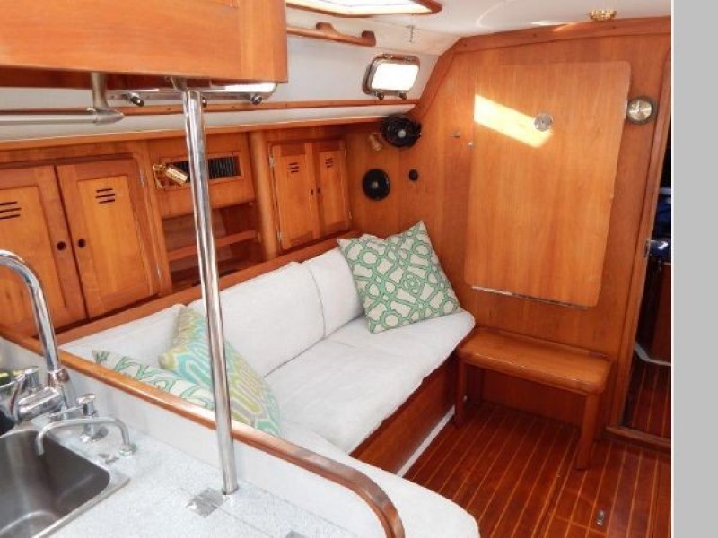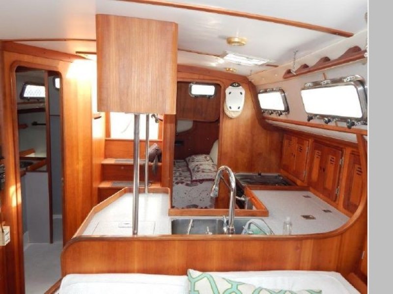 "Waterlilly" has more headroom than a Sabre 426. I am 6'4" and I had no issues with headroom clearance on this boat (I had to hunch over on my Saber 426). The salon is far brighter than other sloops of similar vintage offering deck window lights flooding the living area with natural light on both sides of the center hatch. The companionway is stunning. I "forward walk" down from the cockpit like stairs without having to descend backwards. You won't find this on many boats. (Dogs love this by the way).