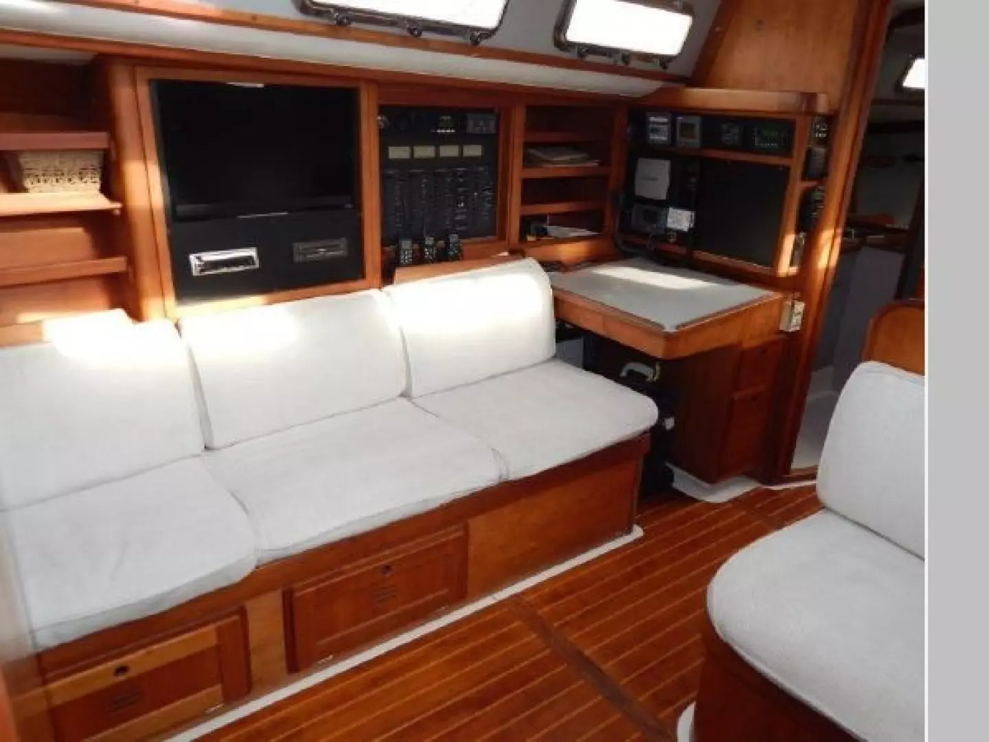 Waterlily is an excellent example of a timeless Freedom 40/40. Her freestanding rig is not only easy to sail but reduces weight aloft and the stress of sail handling on long passages as well as maintenance. The self tacking jib makes short or single handing an easy reality, along with wide decks for safe passage in and out of the cockpit.
