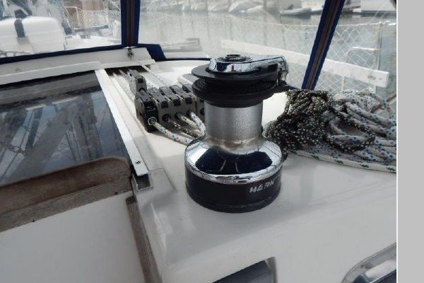 - Harken 48, 2 speed electric halyard winch on cabin top
