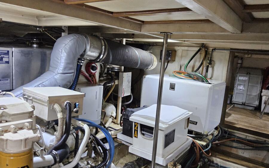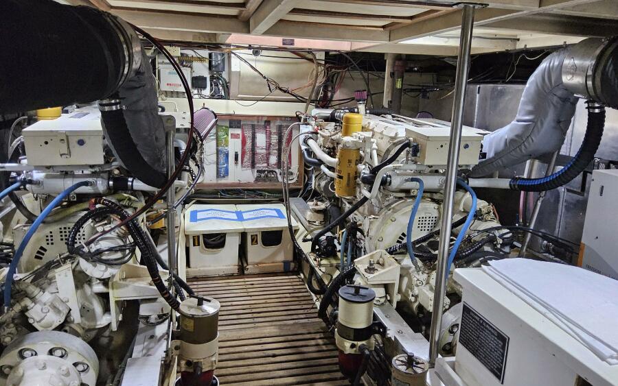 The engine room is accessed through a large hatch on the aft deck. Before you enter through the engine room bulkhead, there is a pump /utility room. 1000 Hour service completed with 6 months warranty!