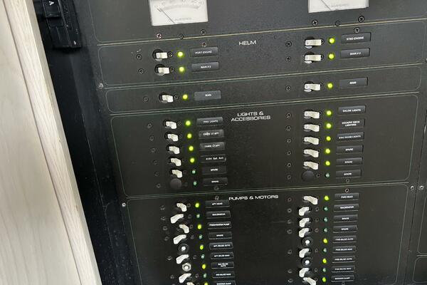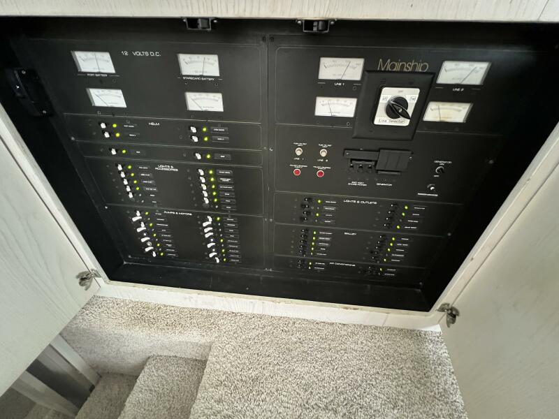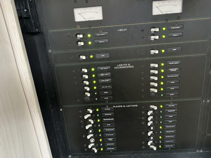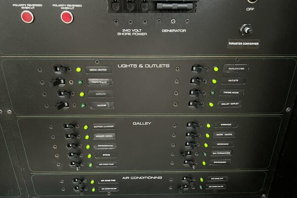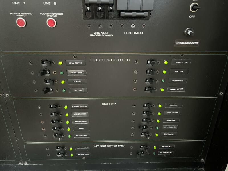 - 50 Amp. 120/240 volt shore power inlet aft and one portside with rotary selector