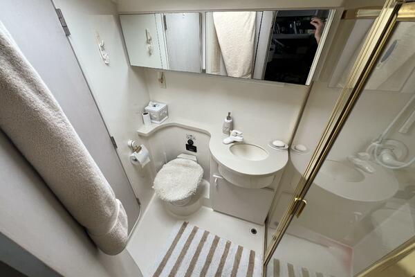 - Both Heads have Sealand Vacuflush 12 volt toilets, vanity, sink and separate shower stalls in each head.
