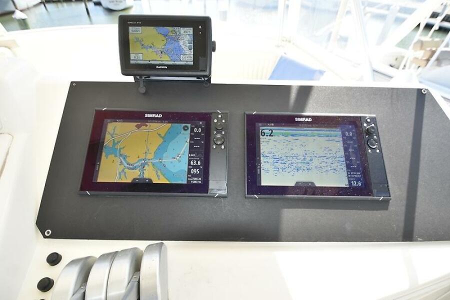 - (2) Simrad 12 inch NSSEVO3s color monitors (24 mile Open Array Radar, CHIRP Transducer Fishfinder, GPS/Plotter)