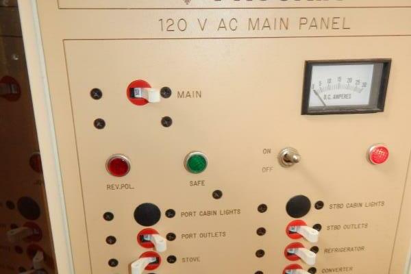 120vac/12vdc electric circuit breaker panel with battery test and DC ampere gauges, new
