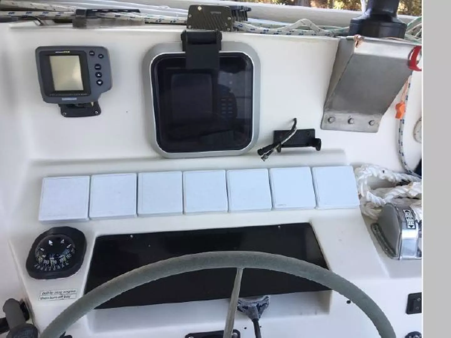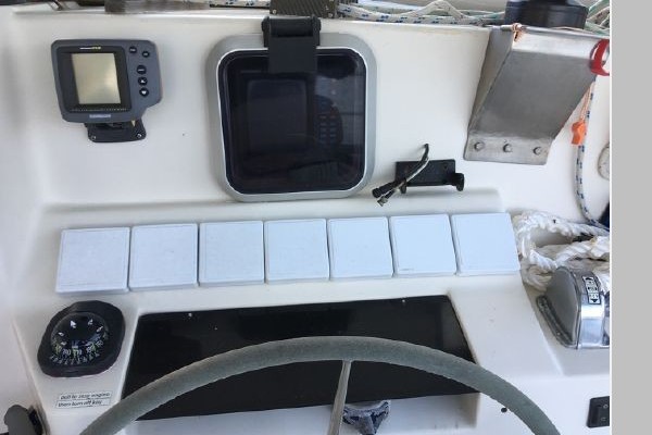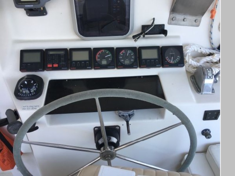Proven "Prout" ocean cruising designed cutter rig with furling head sails. Solid fiberglass hull and a custom designed stern mounted retractable swim platform. Retractable stainless steel swim ladder. Rigid fiberglass bimini cover. Large cockpit seating six comfortably with folding table. Captain's chair (removable). Forward windshield windows open
