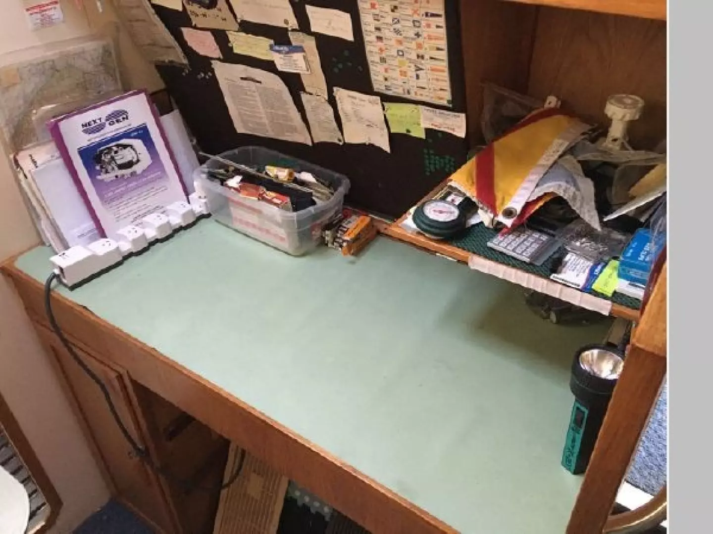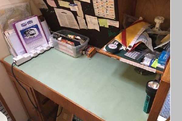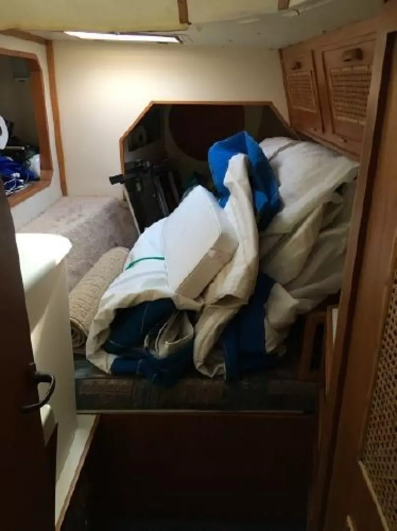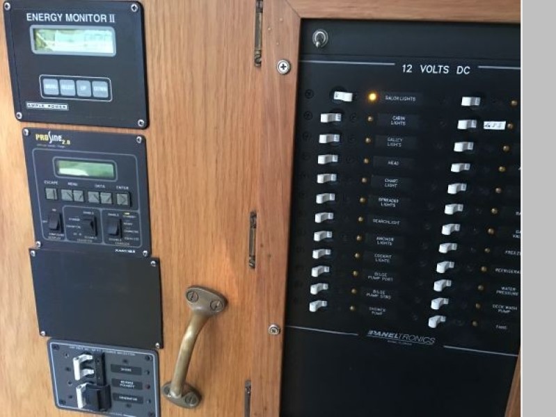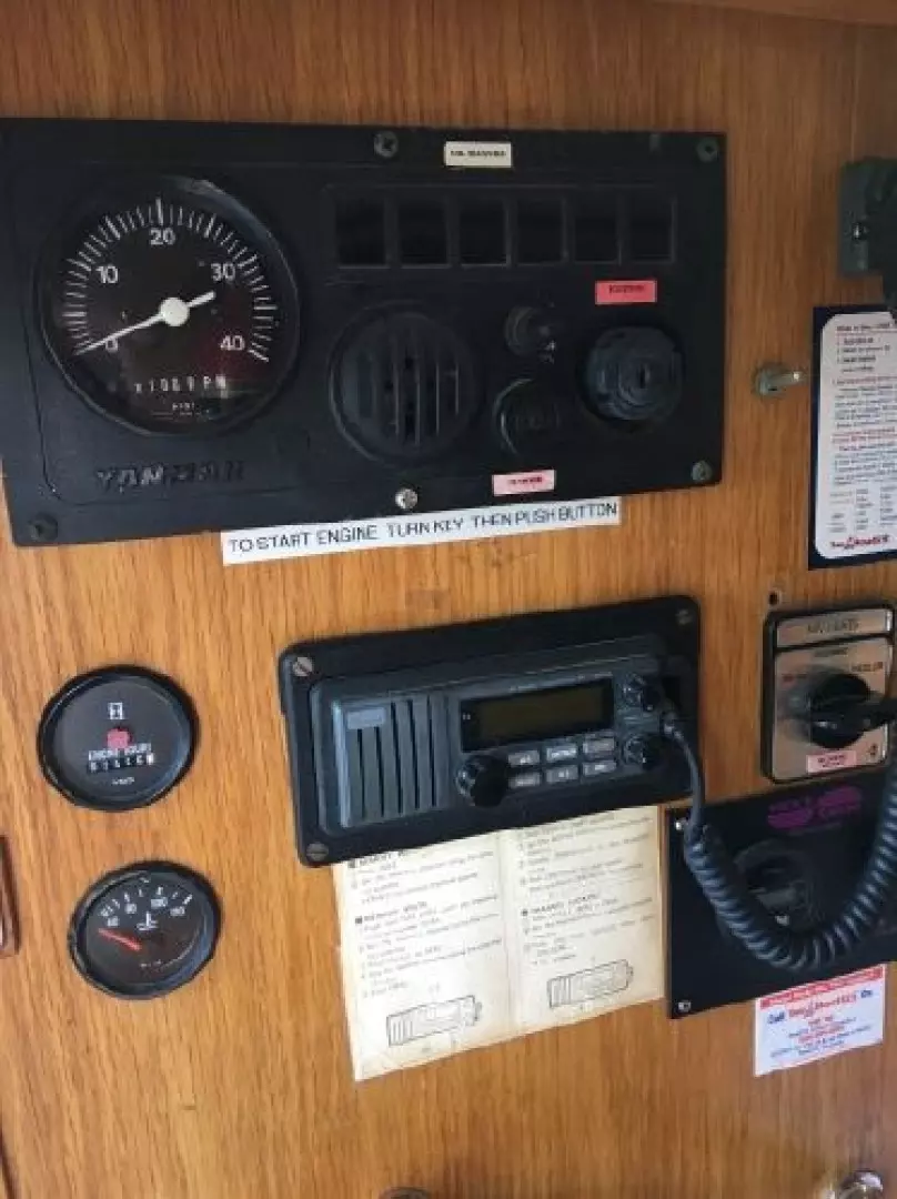 There are extensive spare parts for "Yanmar" engine and "Sonic Silette" down leg. Extra mooring lines and safety equipment, including life jackets, 3 chemical fire extinguishers, ships bell and horn.
