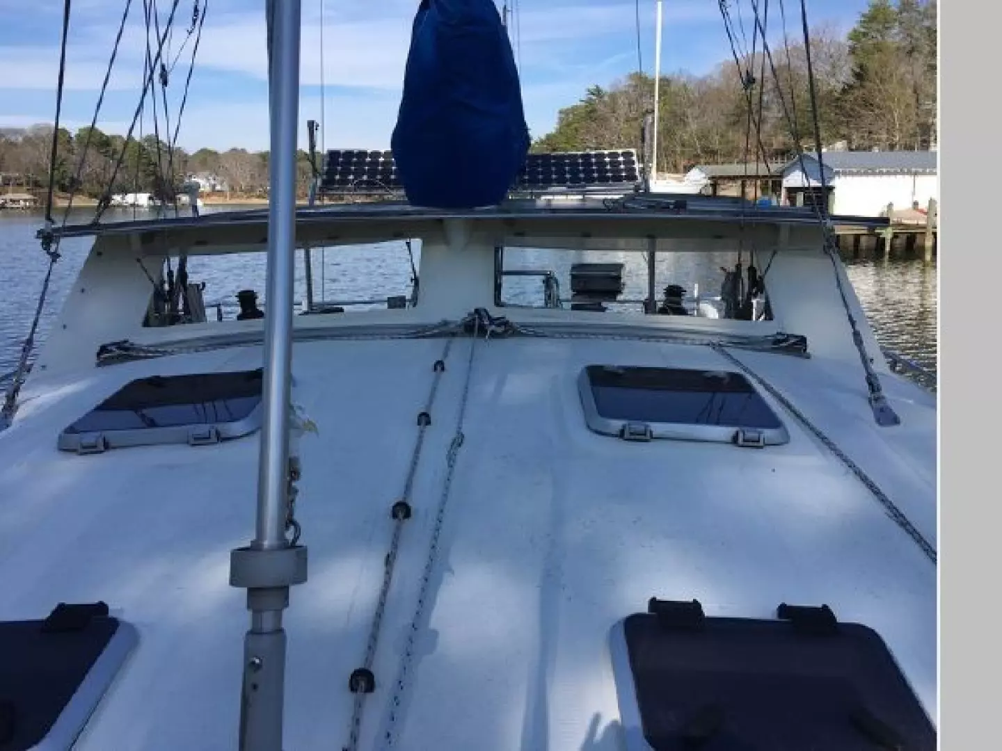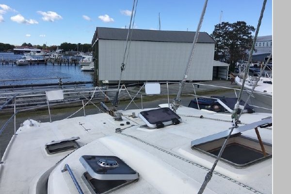 - Full solid foredeck with two large lazarettes for fenders, extra anchors/rodes, including self-draining propane locker