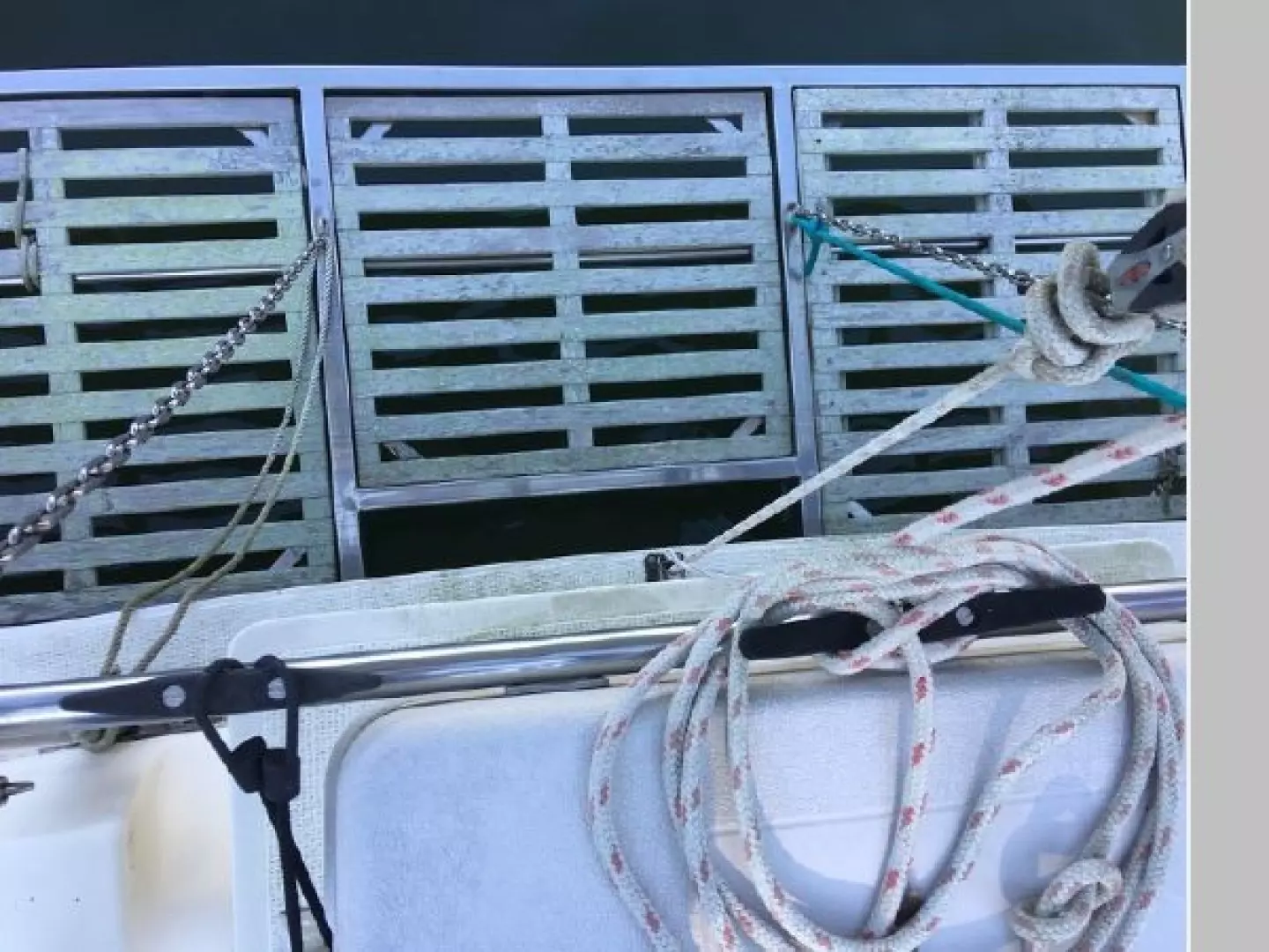 - North fully battened mainsail with "Lazy Jacks" and blue Sunbrella sail cover