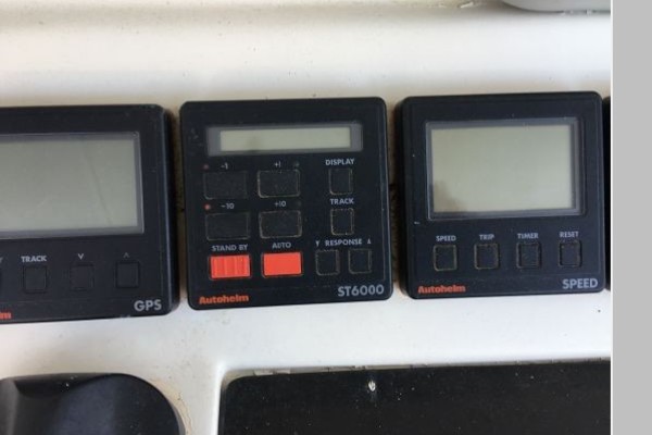 - Hydraulic steering with Autohelm auto-pilot controls linked to dual rudder steering