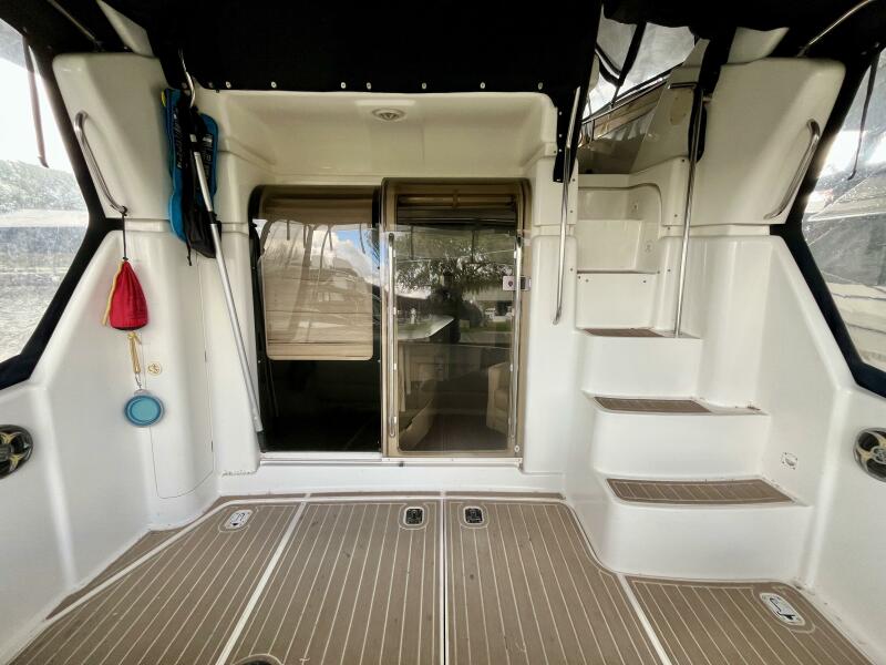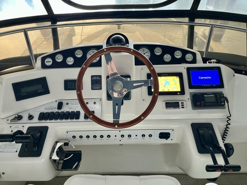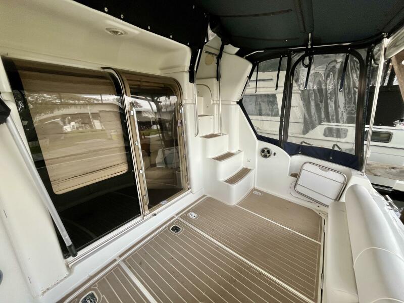 - Flybridge Comfort and Visibility – Wide molded stairs to the bridge, comfortable helm seating, and unobstructed views