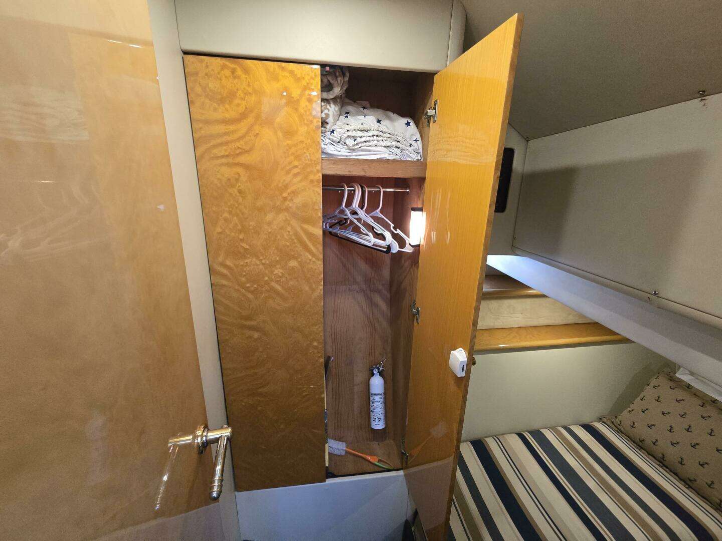 - Step down Port Guest Cabin: This midship cabin typically features one large berth and a large closet.
