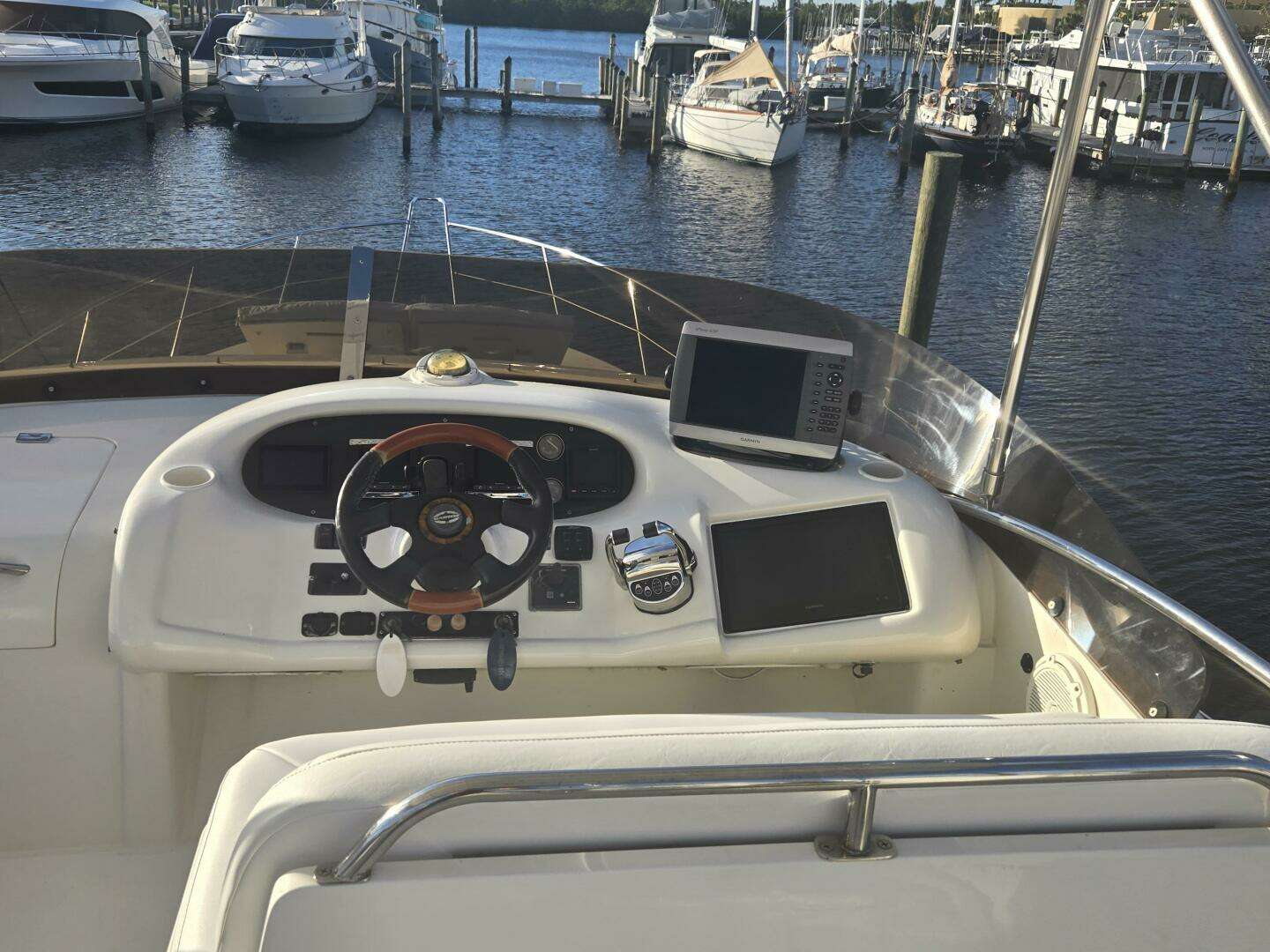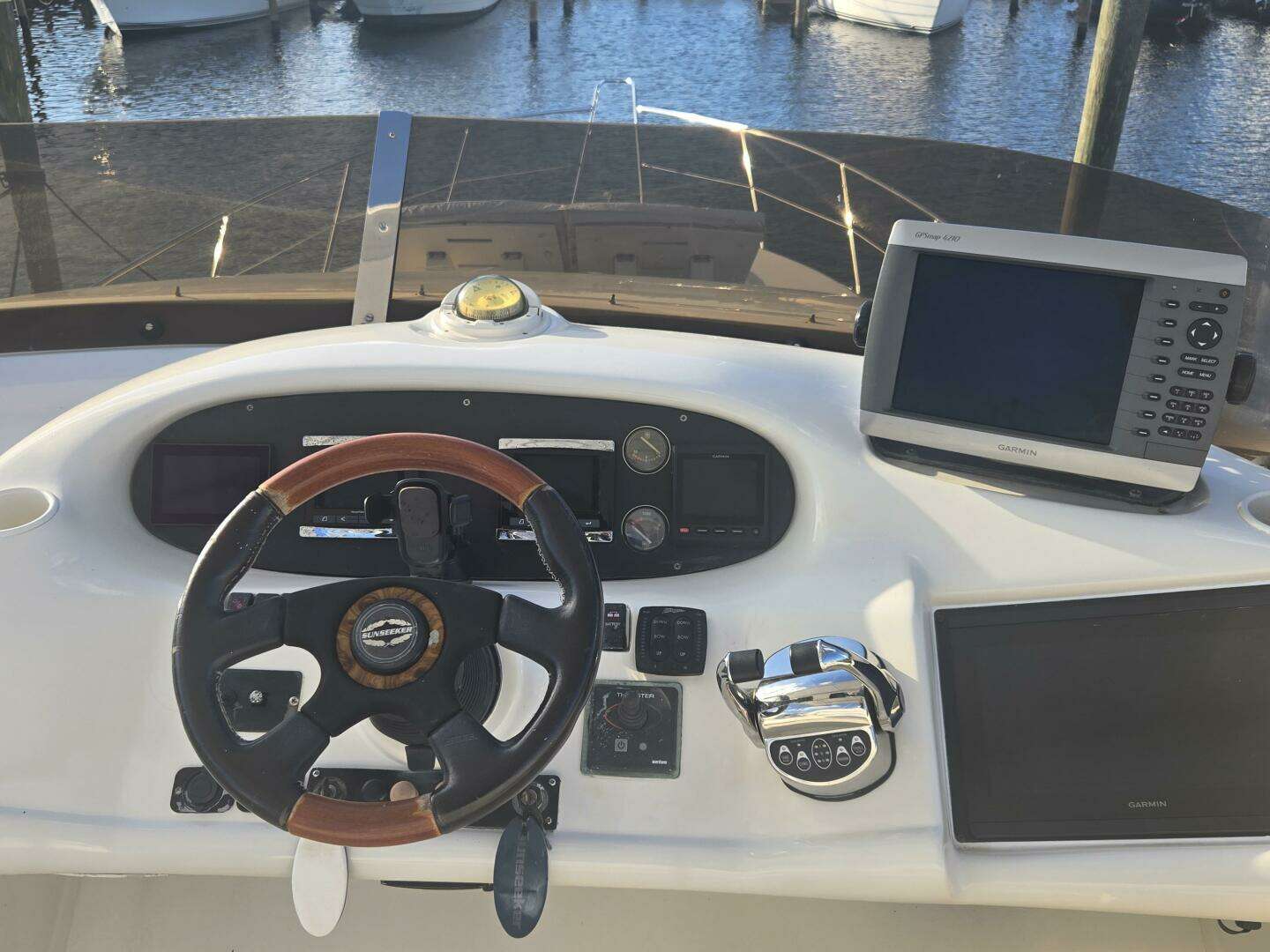 - Integrated Helm Stations: Both the lower helm and the flybridge station are refitted with new dash panels and large, flush-mounted Garmin. (2017)