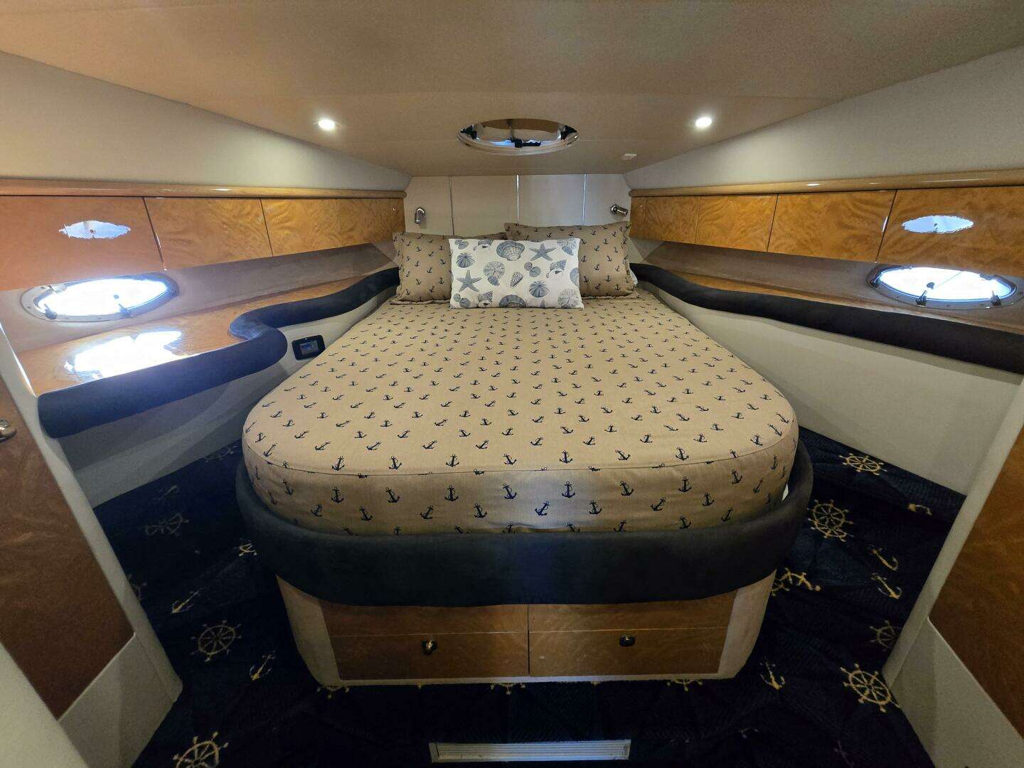 - Master Stateroom (Forward): Located in the bow for maximum privacy. This cabin is the most luxurious, featuring a centerline island queen berth for easy access from both sides. It includes significant storage with cedar-lined hanging lockers and drawers.