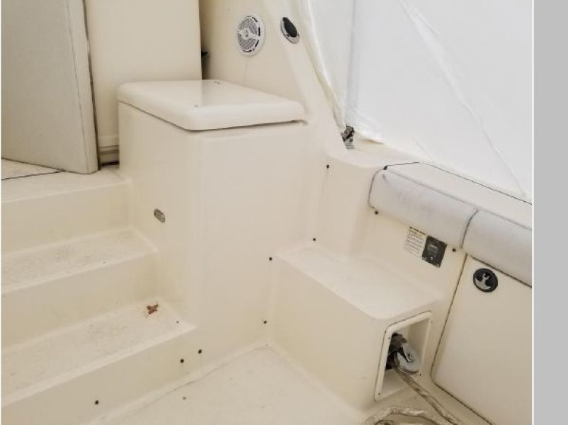 “Heads-Up” fiberglass tilt-away helm station with drink holders and full flush mount electronics capability