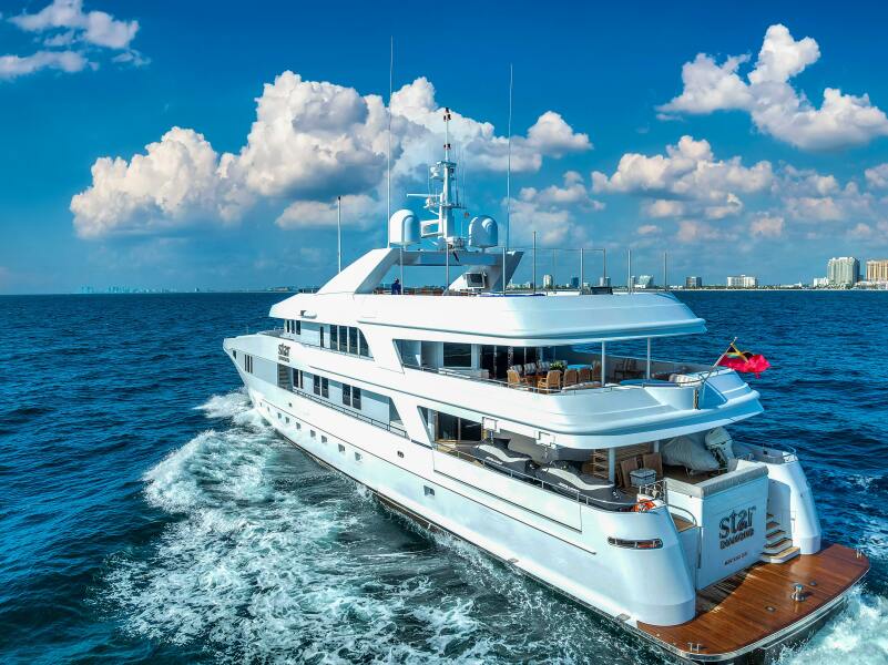 The 154-foot (46.94m) superyacht STAR DIAMOND is a serene on-water retreat, offering the pinnacle of luxury. With exceptional volume for her size, STAR DIAMOND maximizes space for owners and guests, providing an abundance of areas for social gatherings and private relaxation. When considering the recent upgrades, substantial investments, and her unparalleled volume and deck spaces, STAR DIAMOND clearly stands out as an extraordinary value.