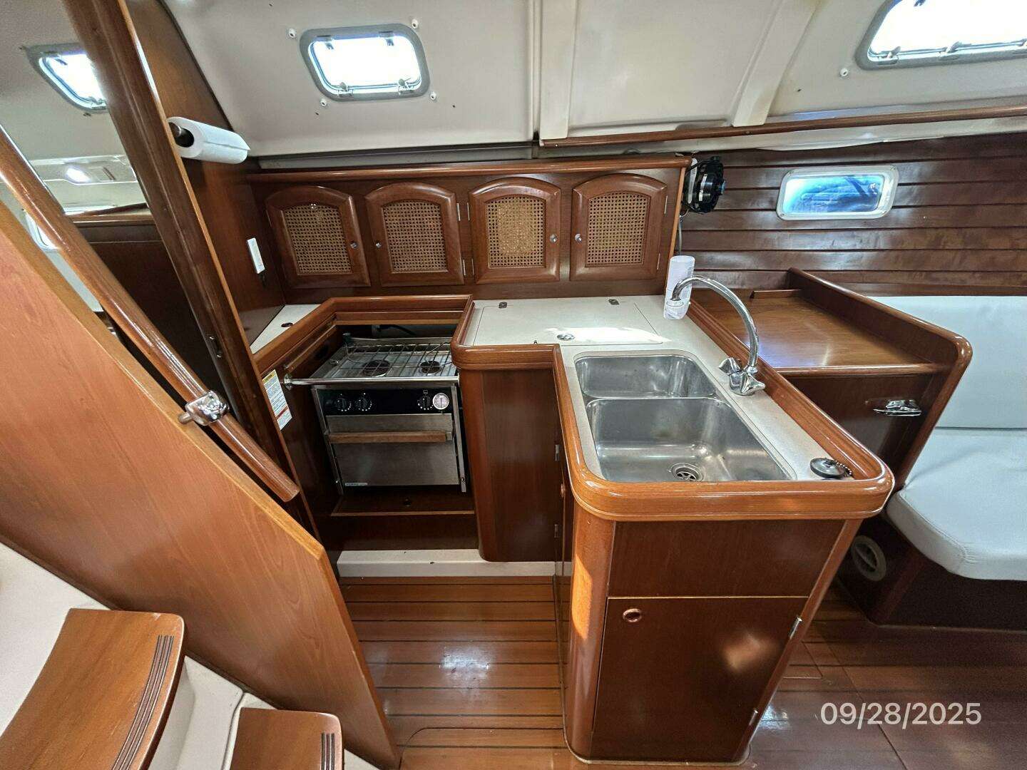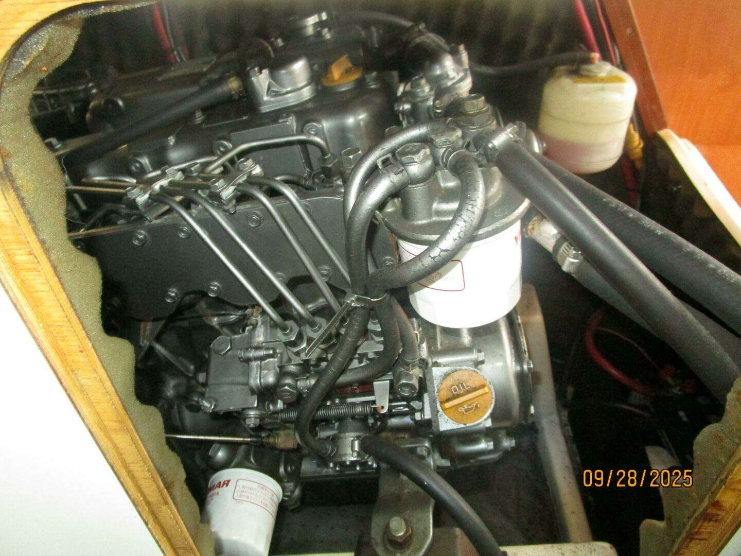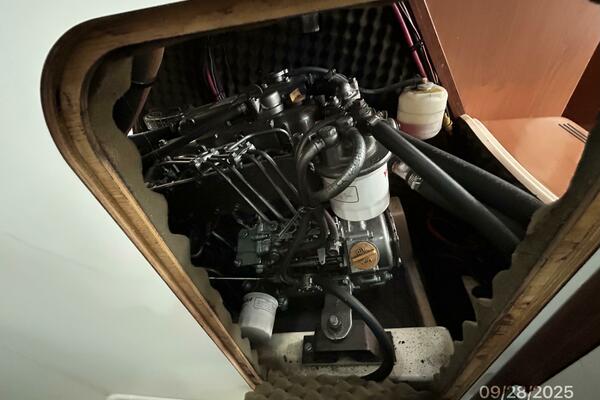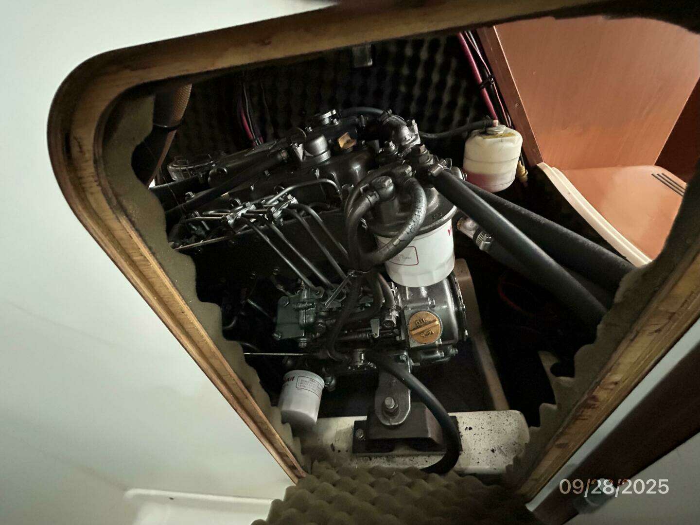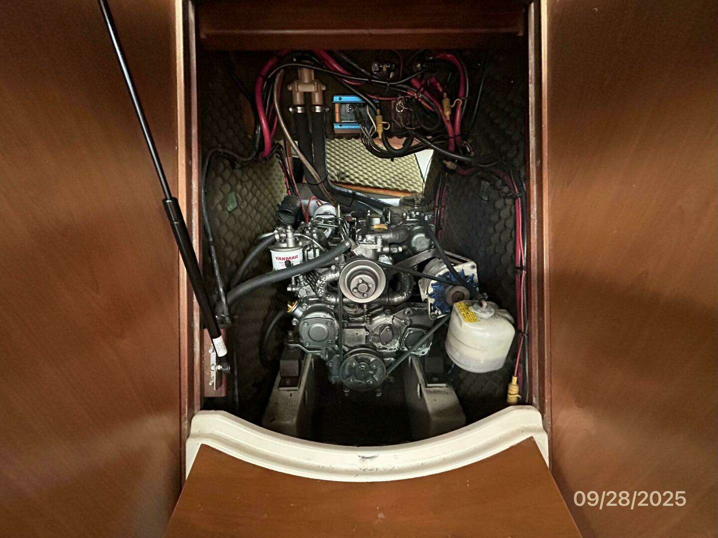 From the sugar-scoop transom, you enter the cockpit via the transom pass-thru and find seating on each side and aft, helm pedestal, bimini and a dodger that needs to be updated. Walk forward and step down the companionway into the salon to find a stateroom with a queen size berth port aft, galley to port, benchseat with storage port forward, head starboard aft, wrap-around settee with a removable double pedestal table starboard forward and a stateroom forward with a queen size berth.