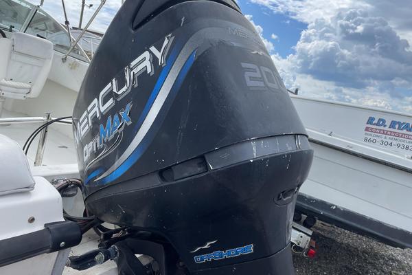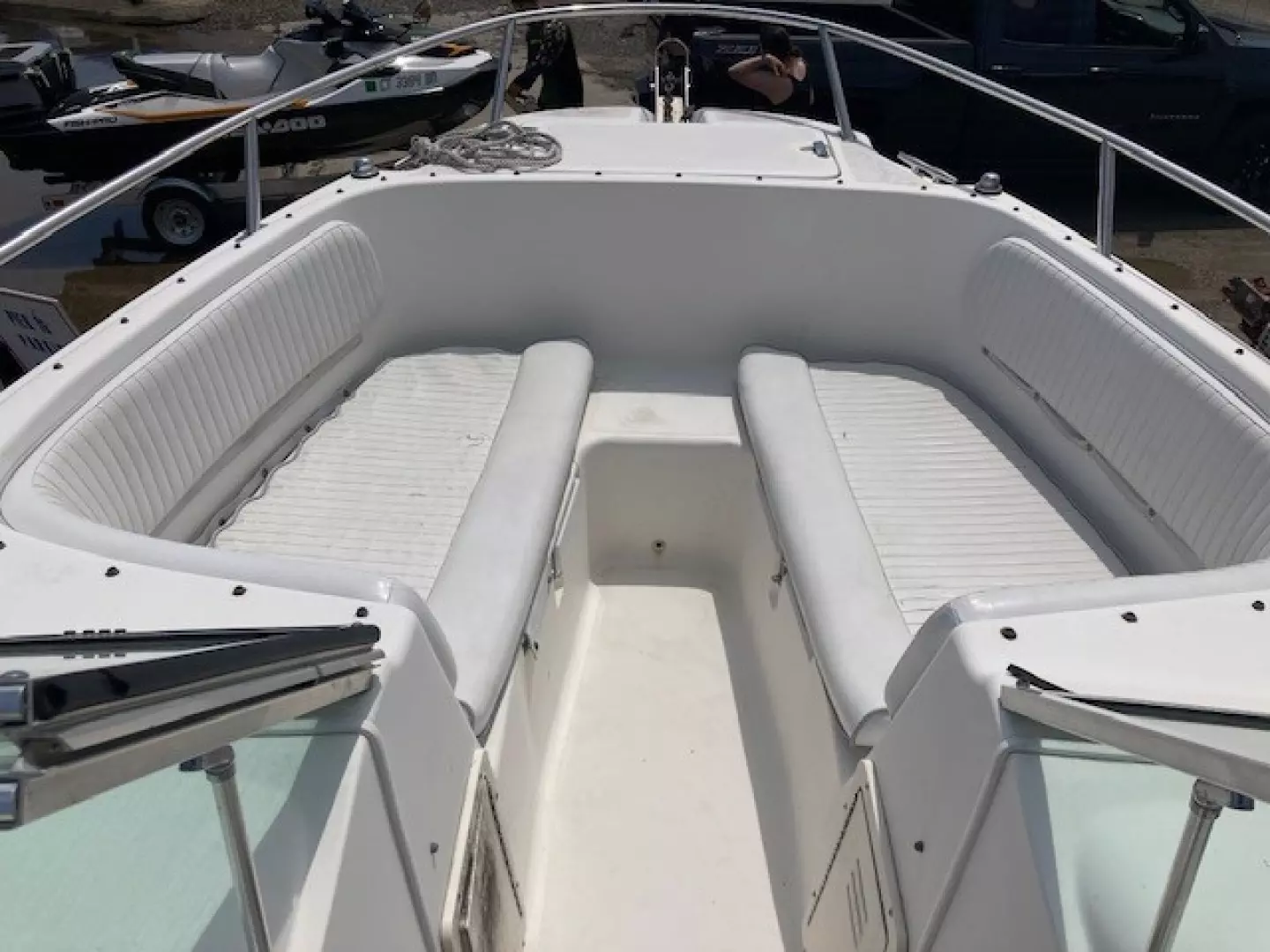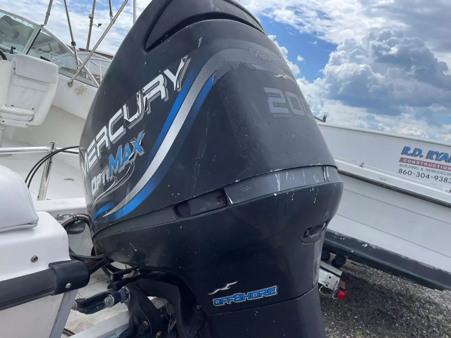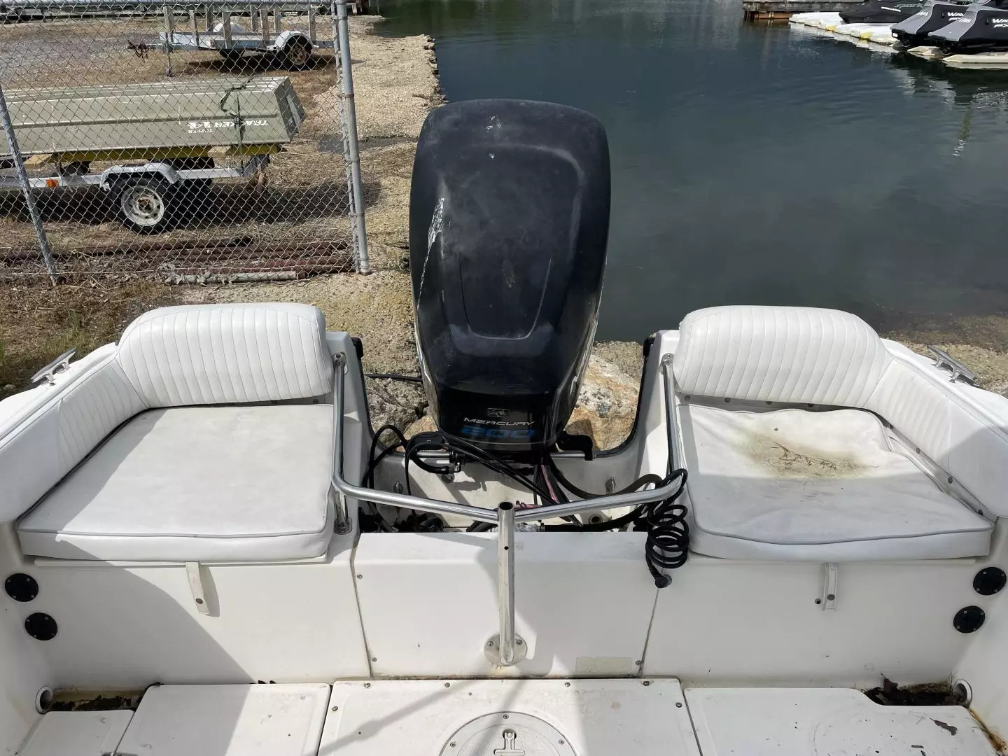 This Ventura 20 has been kept in good shape for her age. Powered by single Mercury 200hp Optimax outboard with 295hrs. Featuring the same deep-V hull as the Outrage for a soft, dry ride, the dual console Boston Whaler 20 Ventura is a low-maintenance runabout combining fish-fighting amenities with family-friendly features. Up to nine people can sit comfortably in the cockpit. The spacious bow area provides seating and sunbathing space. Seating includes a standard pedestal mount helm seat and a back-to-back companion seat which folds flat for lounging.