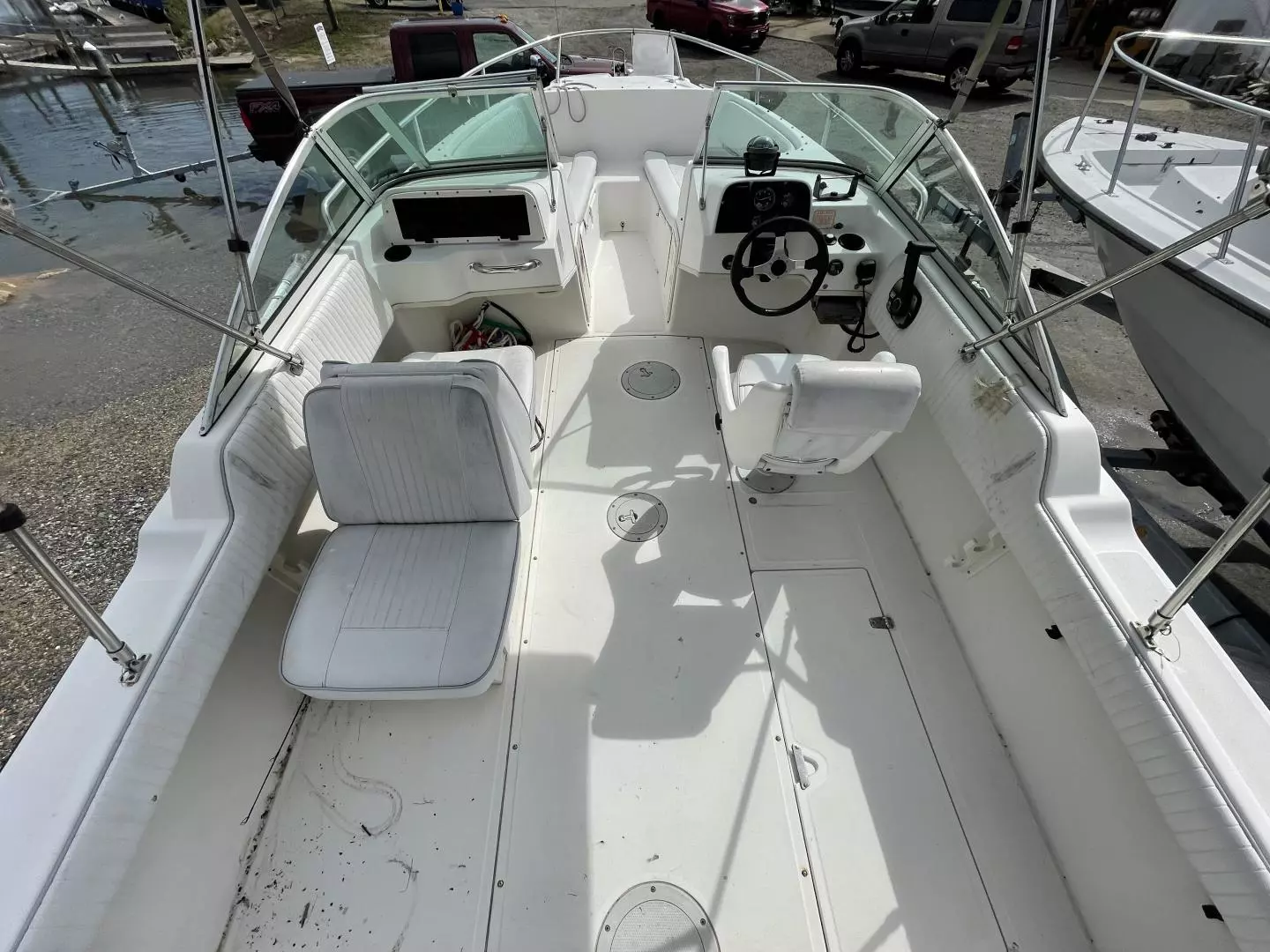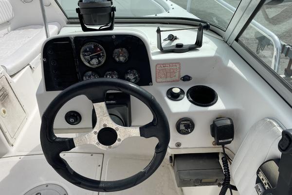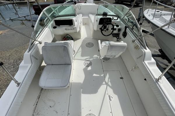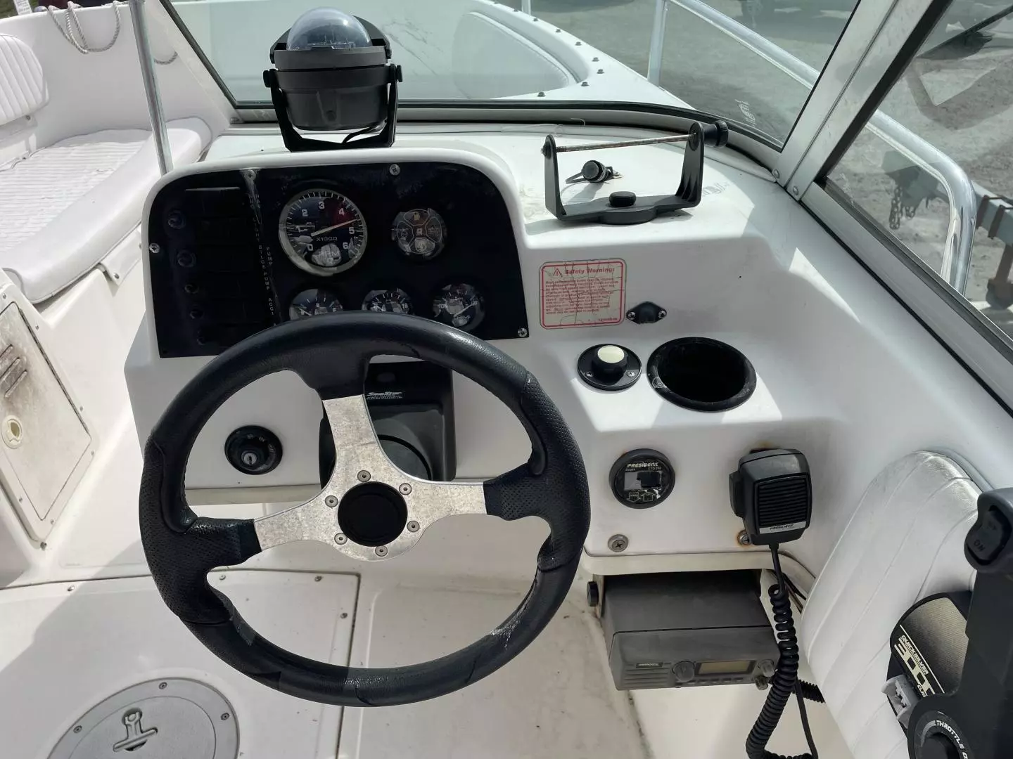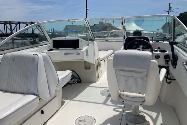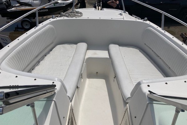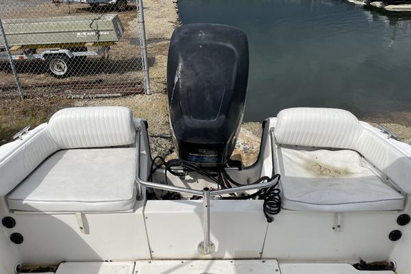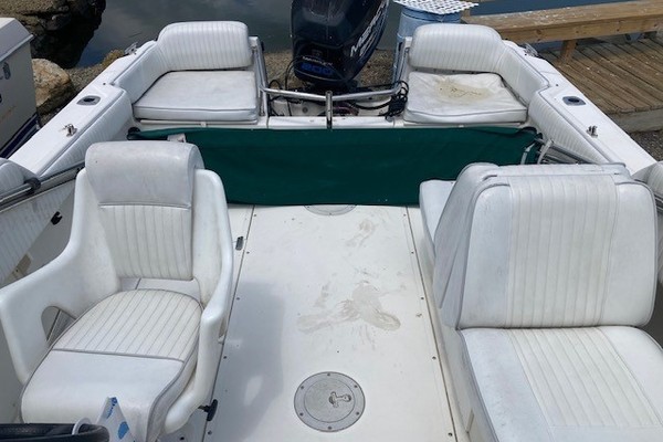 This Ventura 20 has been kept in good shape for her age. Powered by single Mercury 200hp Optimax outboard with 295hrs. Featuring the same deep-V hull as the Outrage for a soft, dry ride, the dual console Boston Whaler 20 Ventura is a low-maintenance runabout combining fish-fighting amenities with family-friendly features. Up to nine people can sit comfortably in the cockpit. The spacious bow area provides seating and sunbathing space. Seating includes a standard pedestal mount helm seat and a back-to-back companion seat which folds flat for lounging.