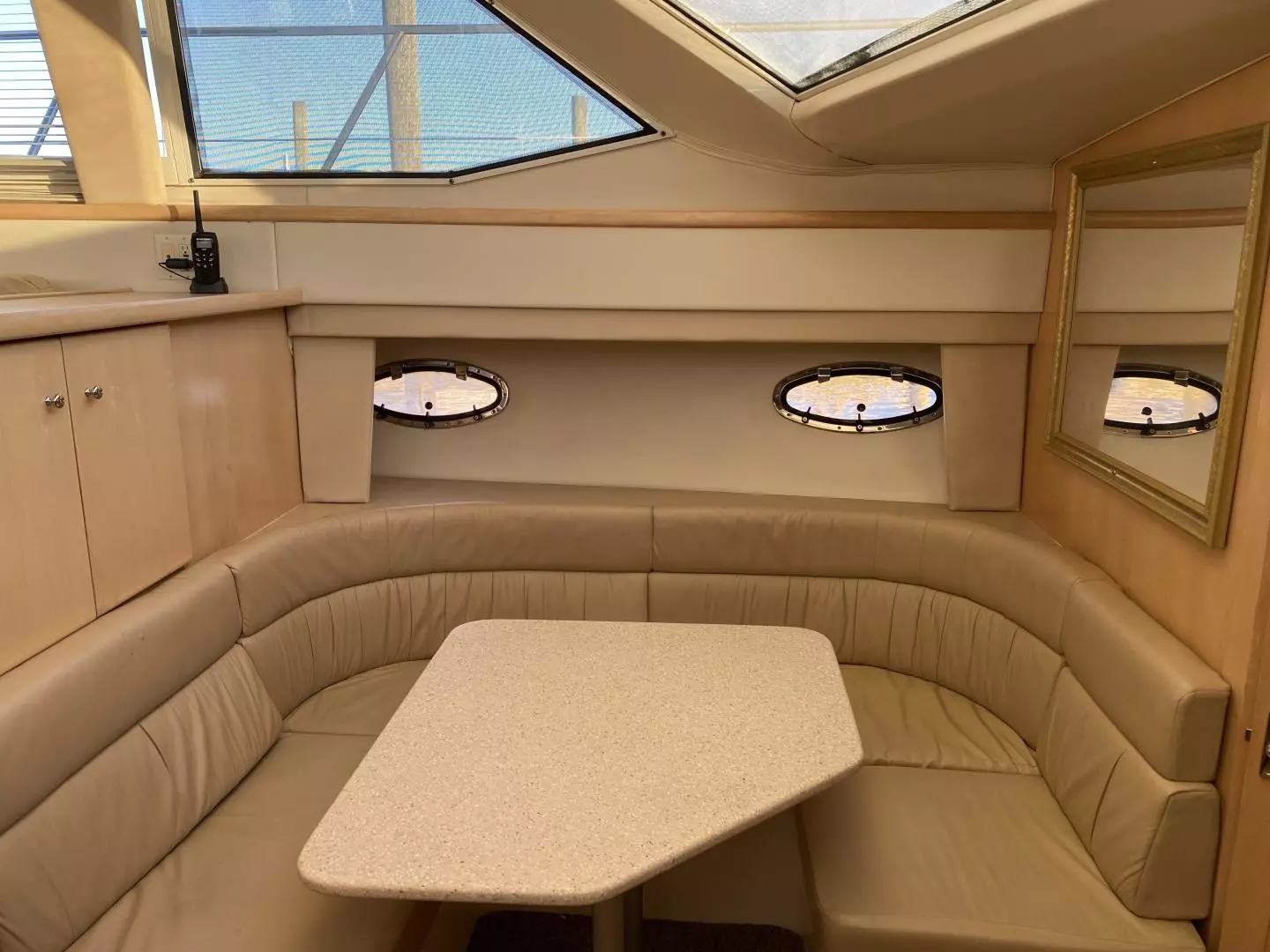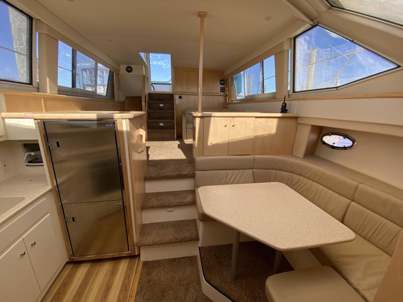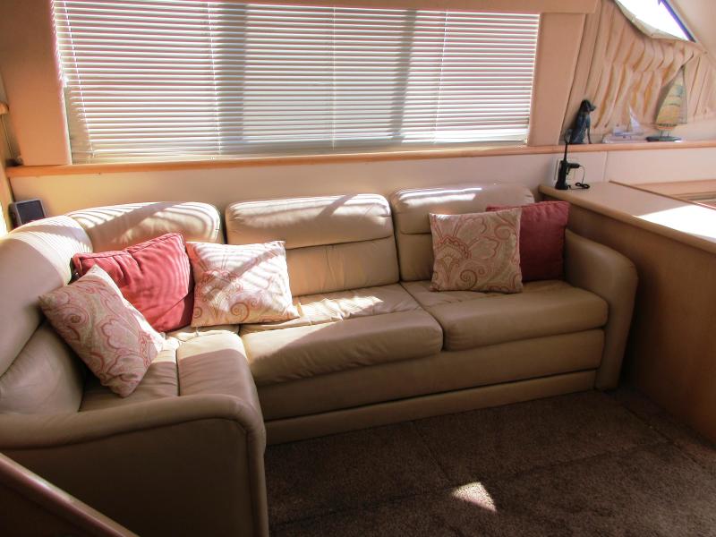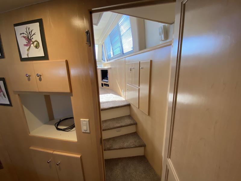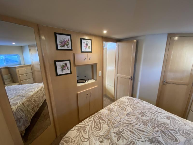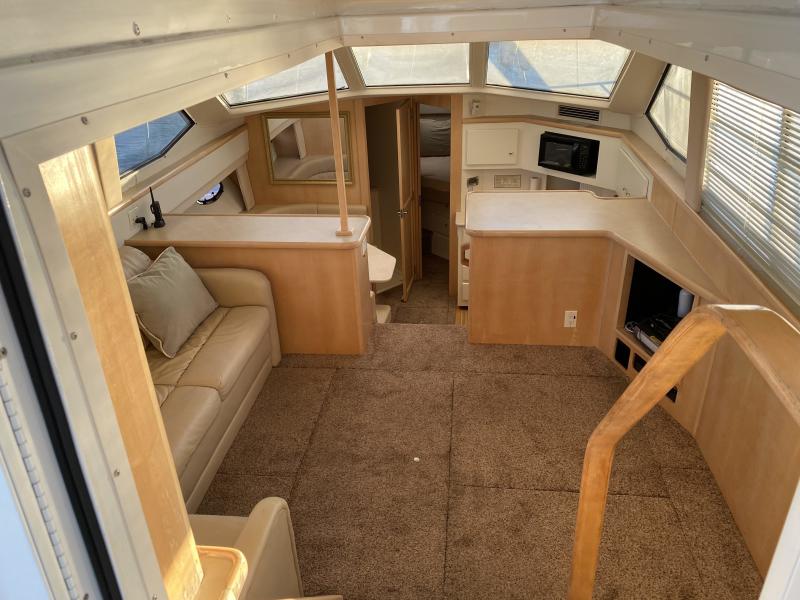 Good natural light and ventilation throughout. Light maple interior. Window treatments, carpet, hardwood floor in galley. Jensen speakers throughout.