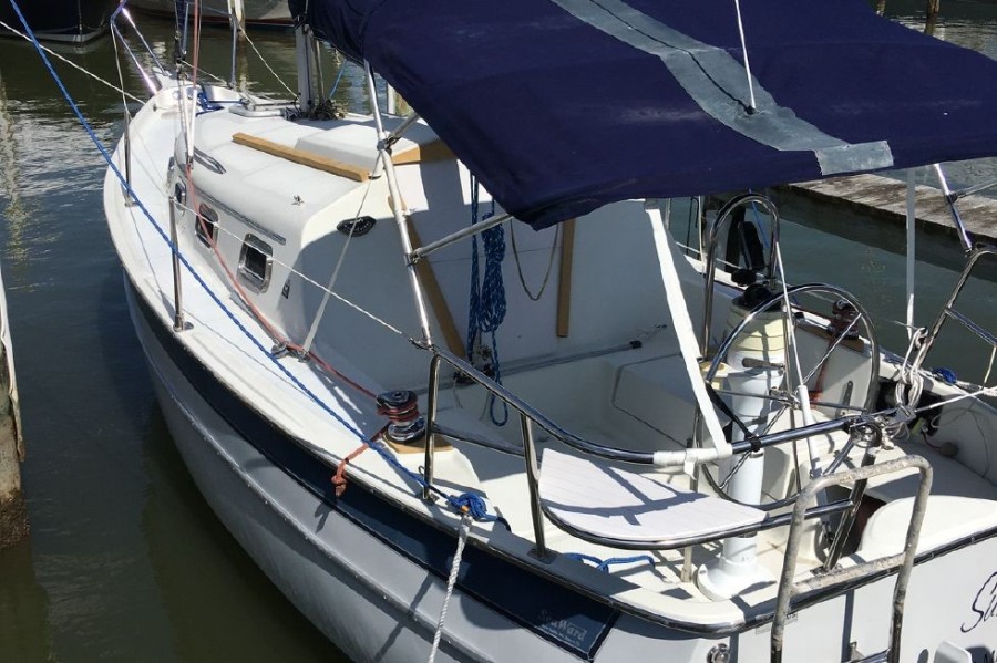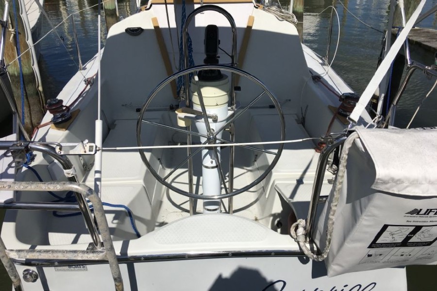 "Surprise" is a lovely little pocket cruiser that one can take anywhere on her trailer. Sail the Chesapeake Bay or take her to an inviting lake in the mountains. She has an amazing amount of space for a 25 footer, that coupled with her pedestal wheel and inboard dsl engine make her an extremely versatile vessel.