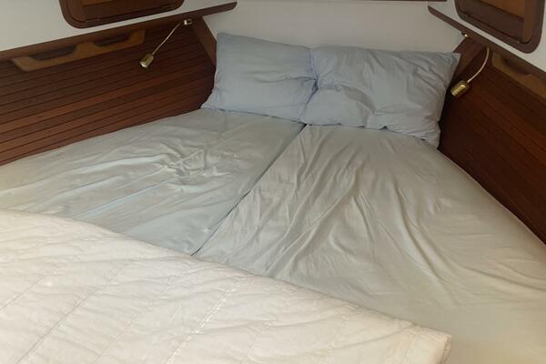 New latex mattresses in forward, owners cabin with Froli spring system.
