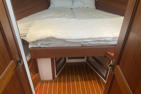 December-January: forward owners cabin converted from V-berth configuration to queen with entry